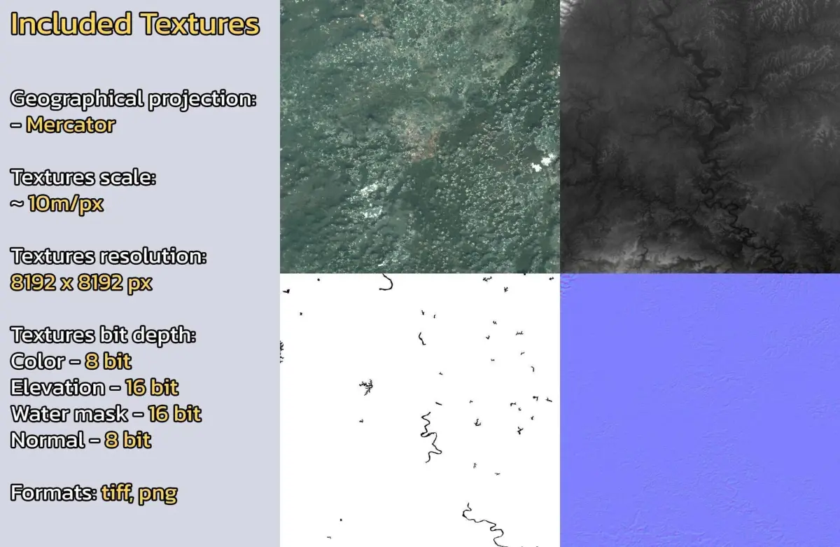 - Textures resolution: ~10m/px