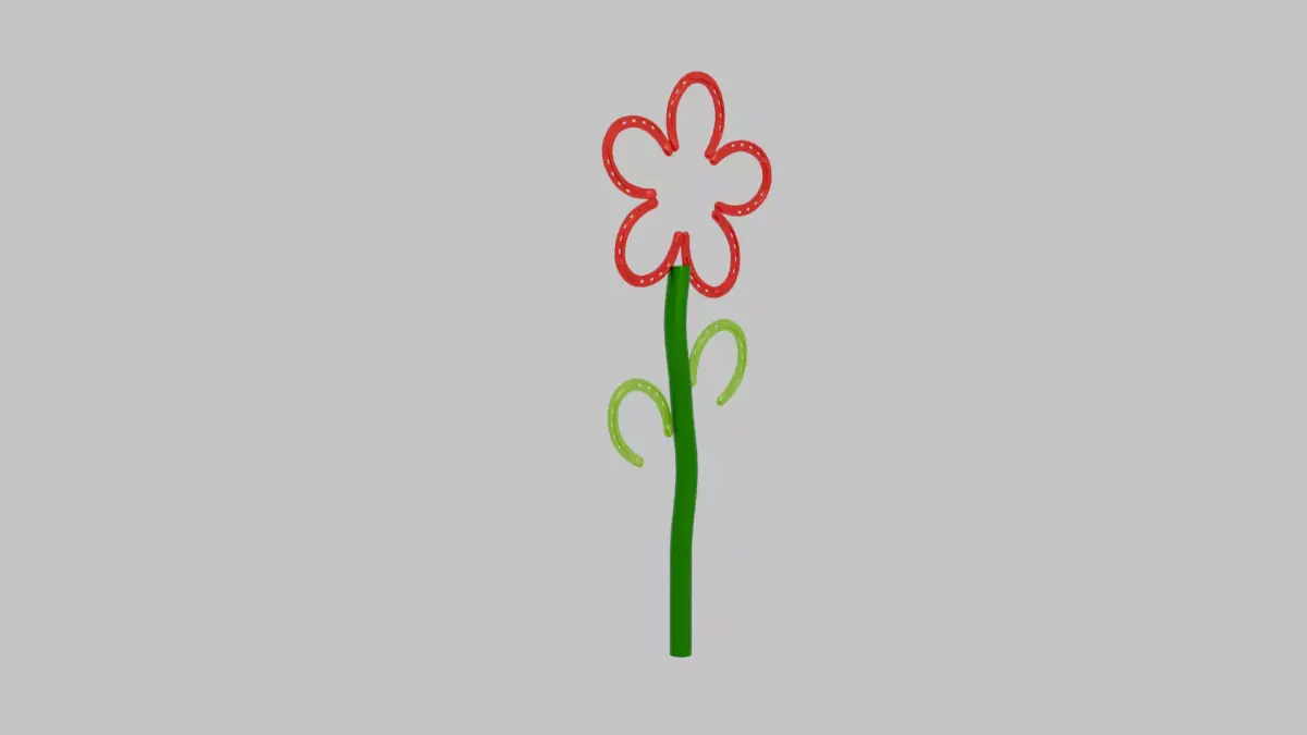 This Yard or Fence Art Horseshoe Flower is a bright, cheerful piece made from welded horseshoes and a curved metal stem. Five horseshoes form the red flower, each one connected at the edges to create a full, rounded bloom. A length of curvy pipe serves as the stem, painted a deep garden green, while the horseshoe leaves branching off the sides are finished in a lighter green for a nice contrast. It has a fun, rustic handmade look and works beautifully as fence art, garden décor, or a colorful accent tucked into landscaping or planters.