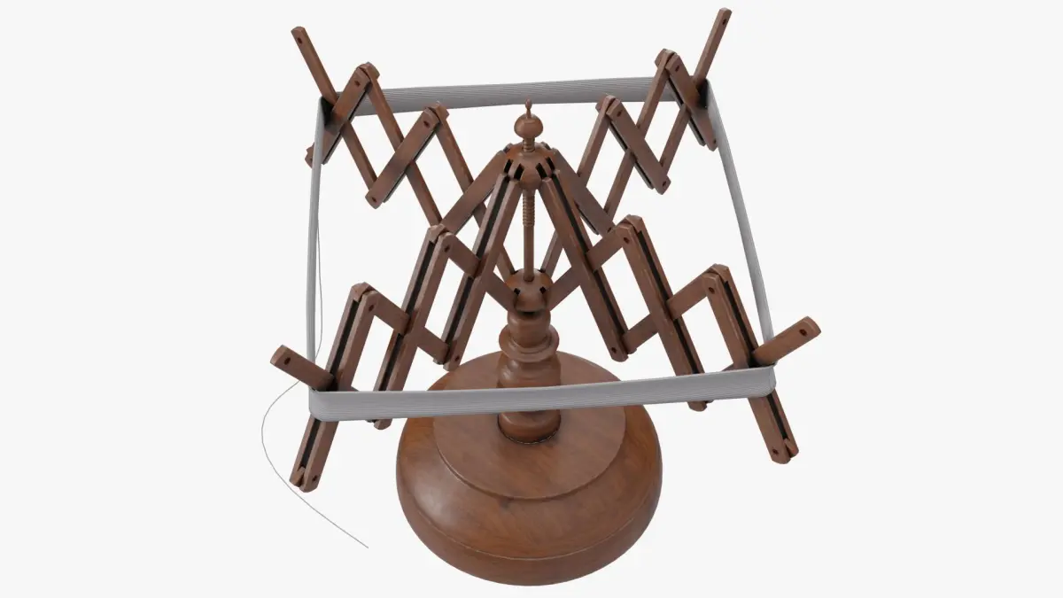 3D model of a swift, a tool used to hold a hank of yarn while it is being wound off (uncoiled from the hank and rewound in a form usable for knitting or crochet).Created in Blender 4.1.0. The whole model is textured, with fully unwrapped UVs. 4096x4096 PNG texture maps are provided (color, roughness, normal, metalness, ambient occlusion).The model consists of 16312 faces and 17186 vertices. Please notice that model does not include any backgrounds, lights, or cameras used in preview images.Several exchange formats including .blend, .OBJ, .fbx, .DAE, .stl, .abc