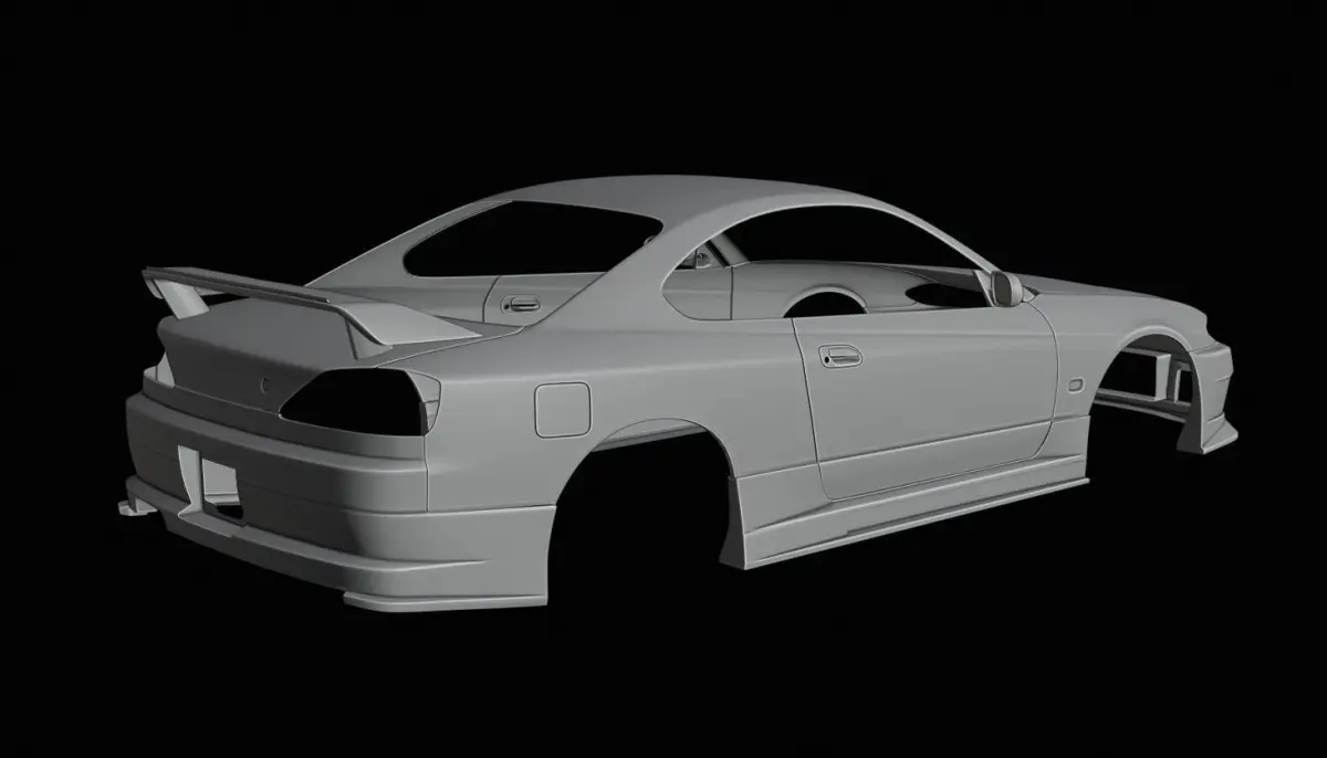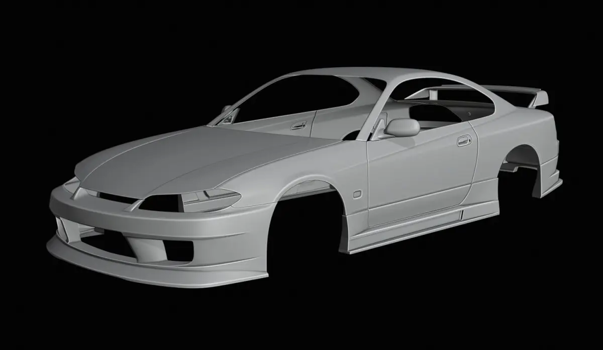2005 D1GP style, (Included)Having a more minimal than wide body stance, this version using a custom rear wing and front wide fender with minimal rear widebody arches and front Canards.