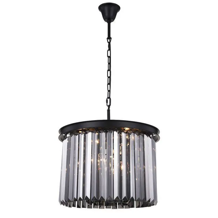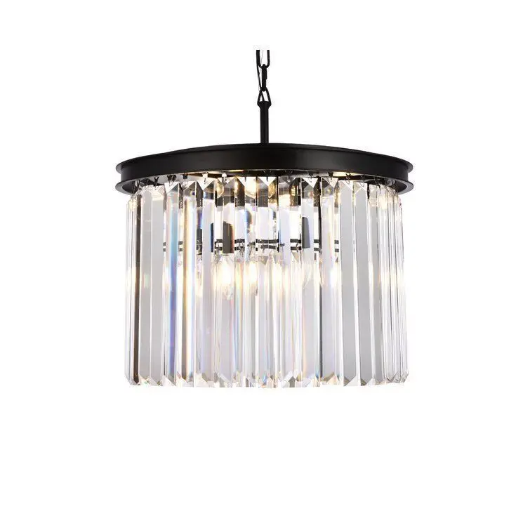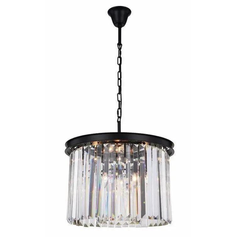 - This 6-light tiered chandelier has a curtain of hanging crystal pillars that make a statement in your space. The shade is made from metal and genuine crystal hung in a drum shade silhouette. The modern metal ring canopy and frame feature a height-adjustable chain you can customize for the size of your space. We love that the row of glass crystals reflects and refracts the downlight.