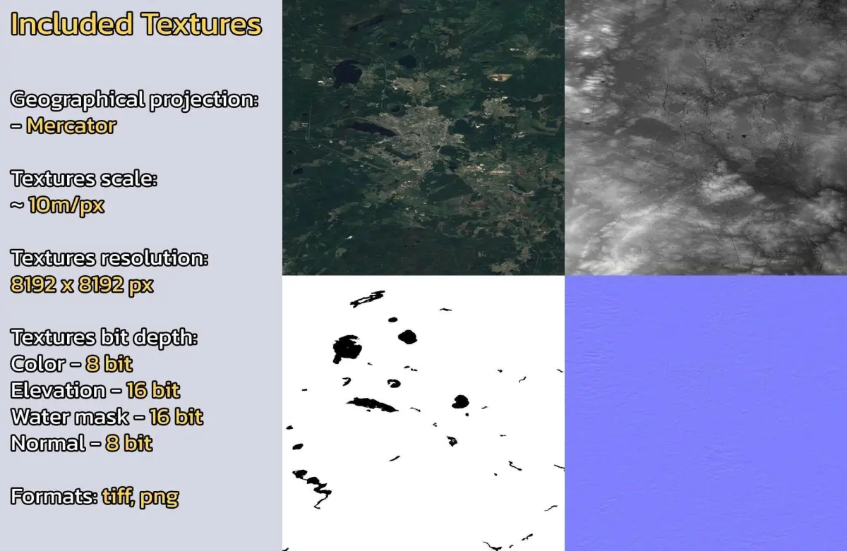 Warning: minor clouds/artifacts may be present on the diffuse color satellite texture due to the nature of the dataset. Check product images.