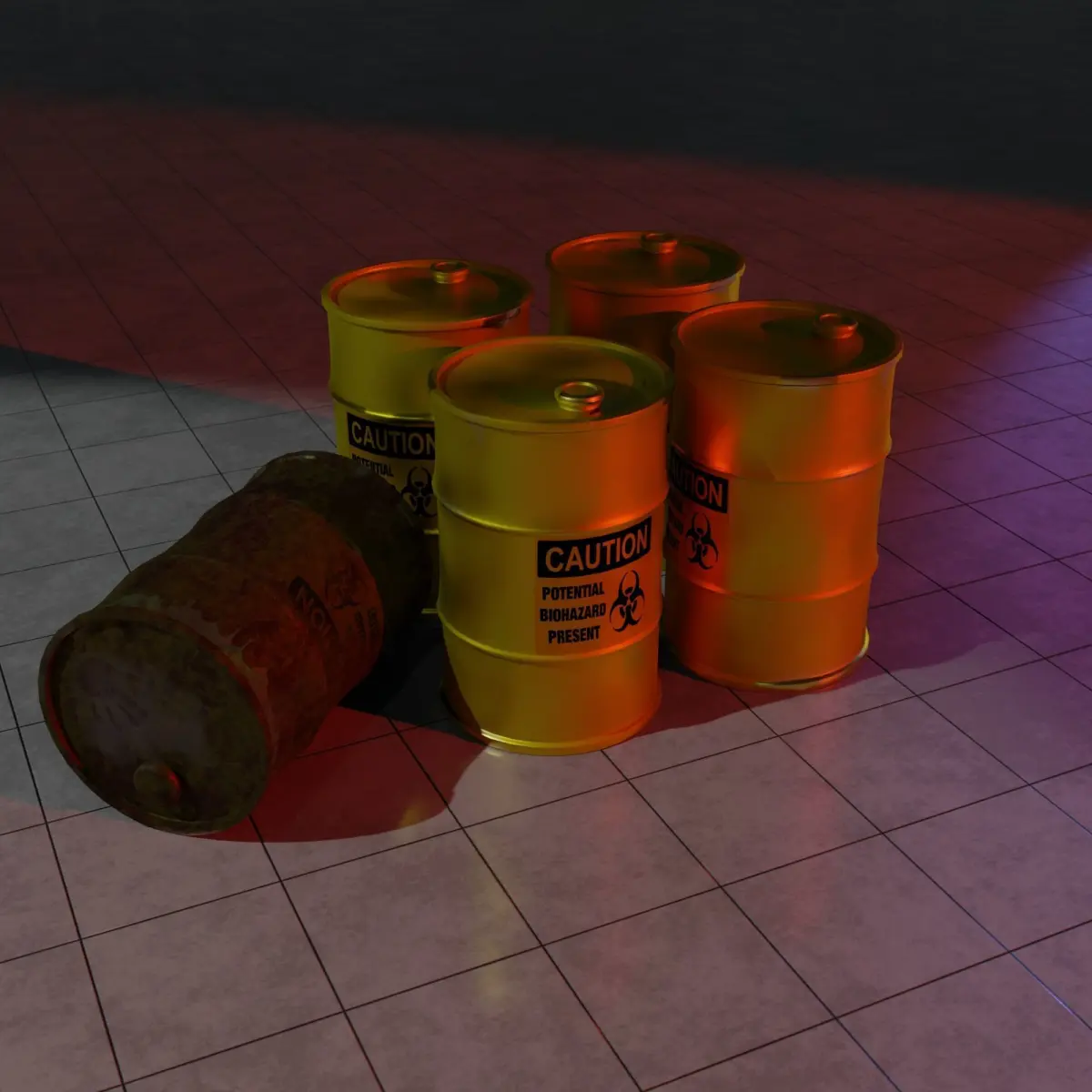 YellowA barrel labeled a biological threat, in which viruses could presumably be transported.Low and high poly model, STL, OBJ, FBX and Blend format.Normal, color and roughness maps.