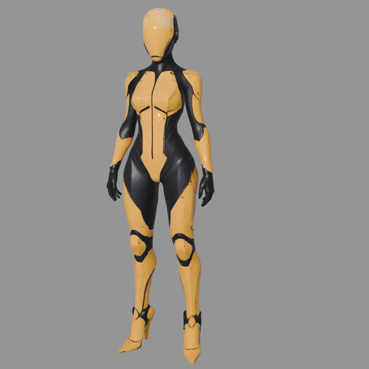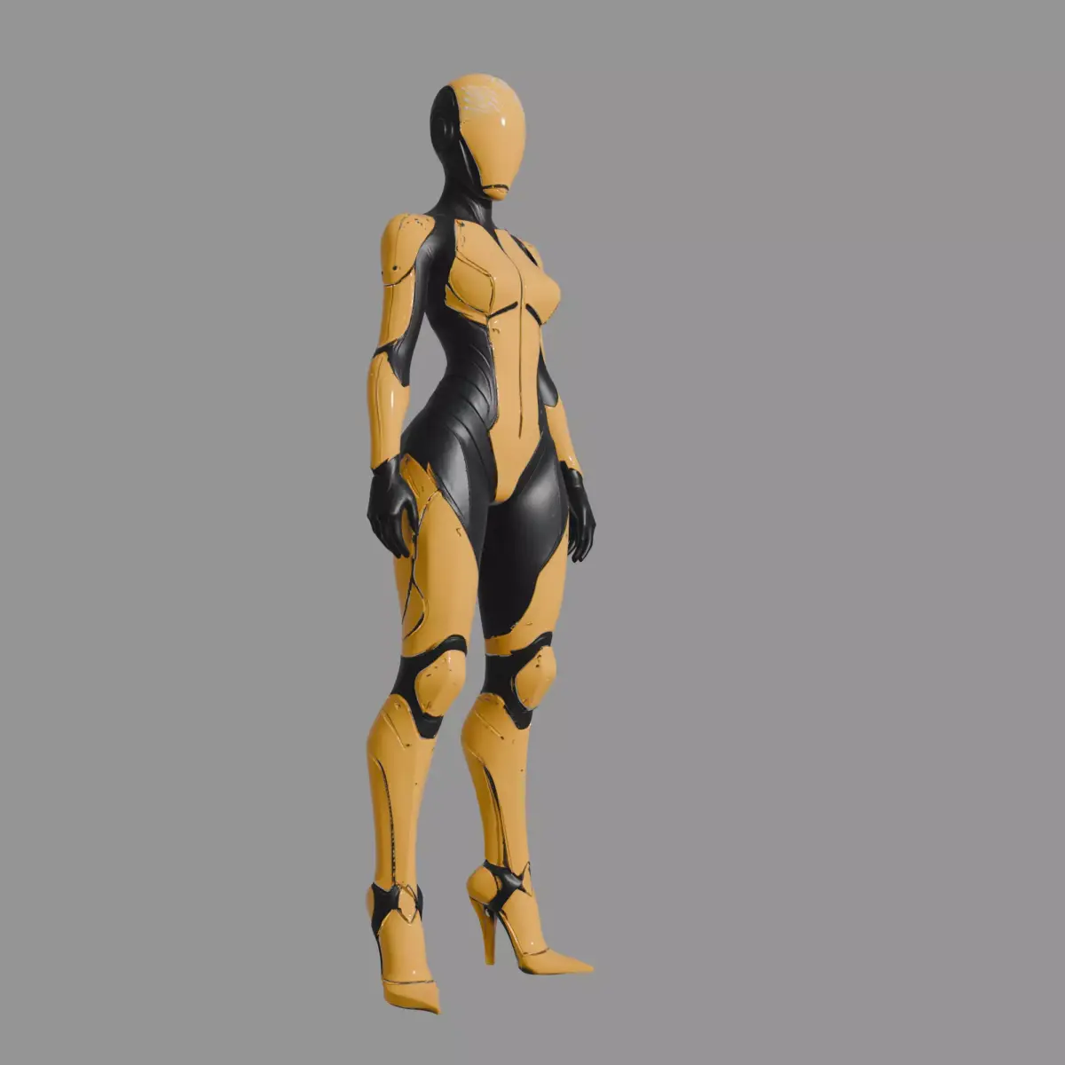 This Yellow Black Cyber Assassin is a striking 3D model of a sleek, agile female cyborg, designed with a bold yellow and black armor scheme that emphasizes speed and precision. Its smooth, aerodynamic silhouette, minimalistic helmet, and subtle battle wear make it ideal for roles like elite operatives, sci-fi assassins, or futuristic agents in games, animations, and concept art.The model balances a feminine form with a high-tech, combat-ready aesthetic, ensuring it stands out in cyberpunk or sci-fi environments while maintaining a polished, professional look.