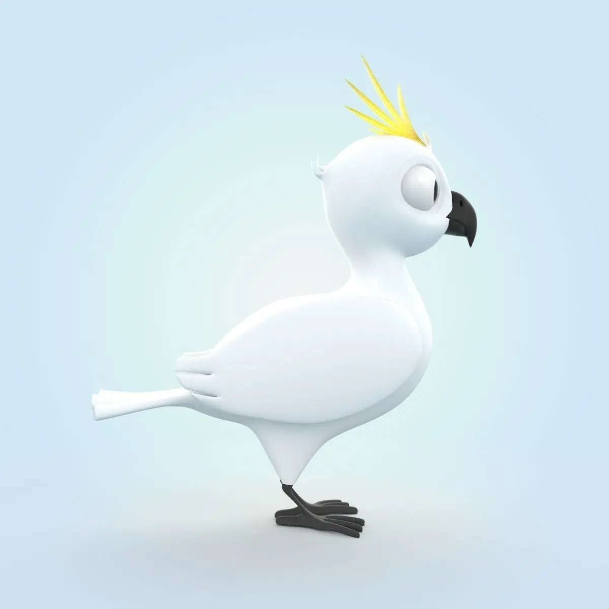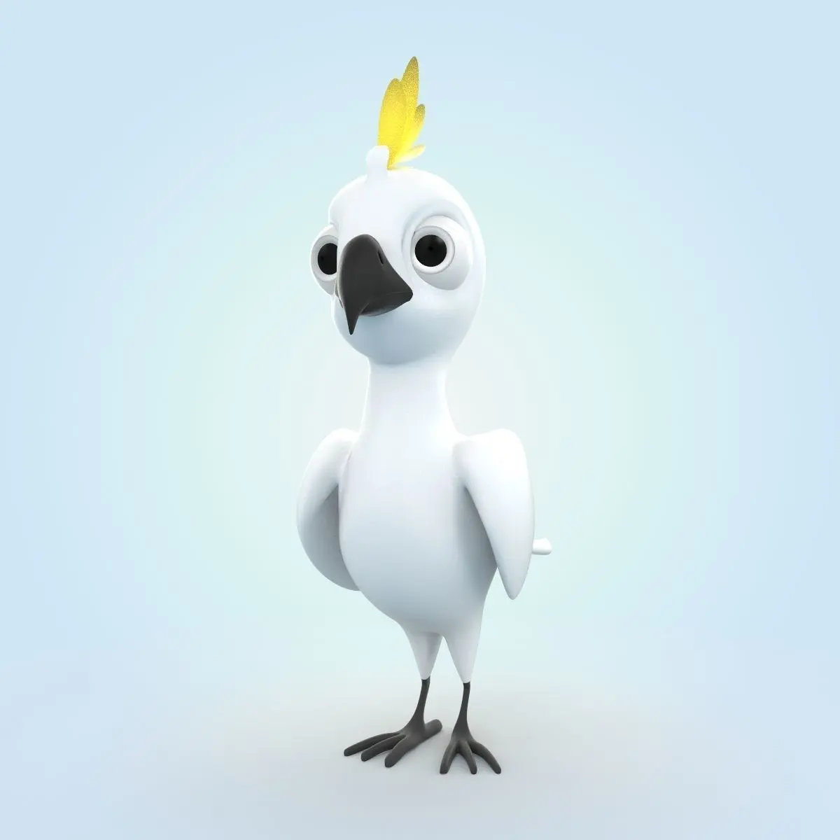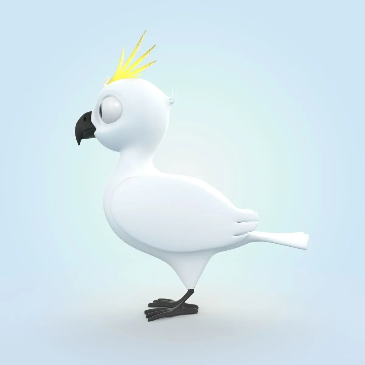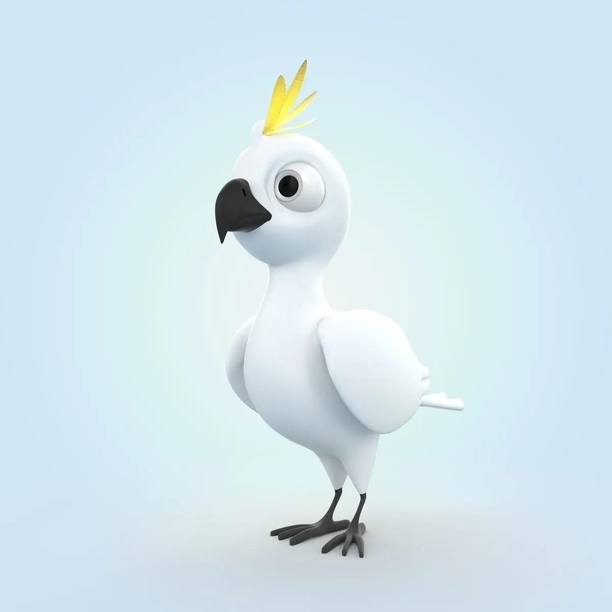 Yellow Crested Cockatoo Cartoon 3D Model.