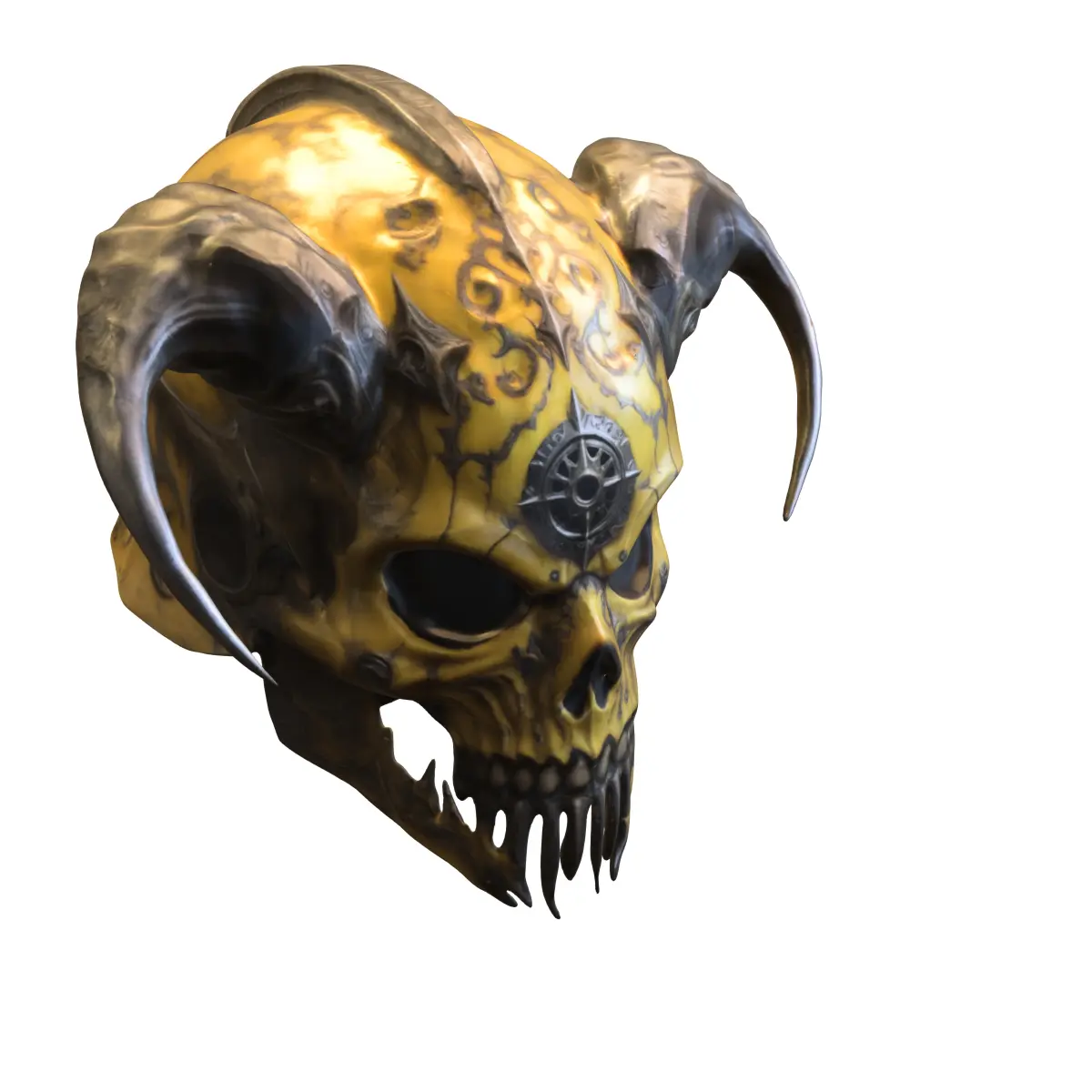 Highly detailed Yellow Demonic Skull Mask model, perfect for games, VR/AR, and visual projects. Optimized for real-time engines such as Unreal Engine and Unity. Available in formats: DAE, OBJ, STL, USD, PLY, FBX, GLB. Comes with a 2048x2048 PBR texture for high-quality rendering.Technical Details:Vertices: 923,358Triangles: 307,786Dimensions: X: 1.99 | Y: 1.99 | Z: 1.77Volume: 0.20 | Surface: 16.44