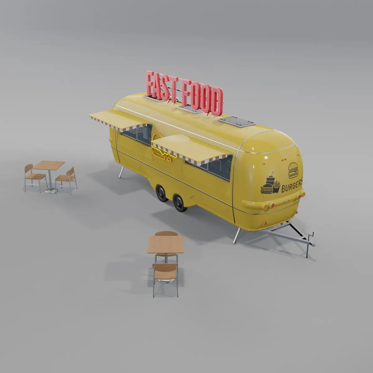 Yellow Fast Food Trailer 3D model