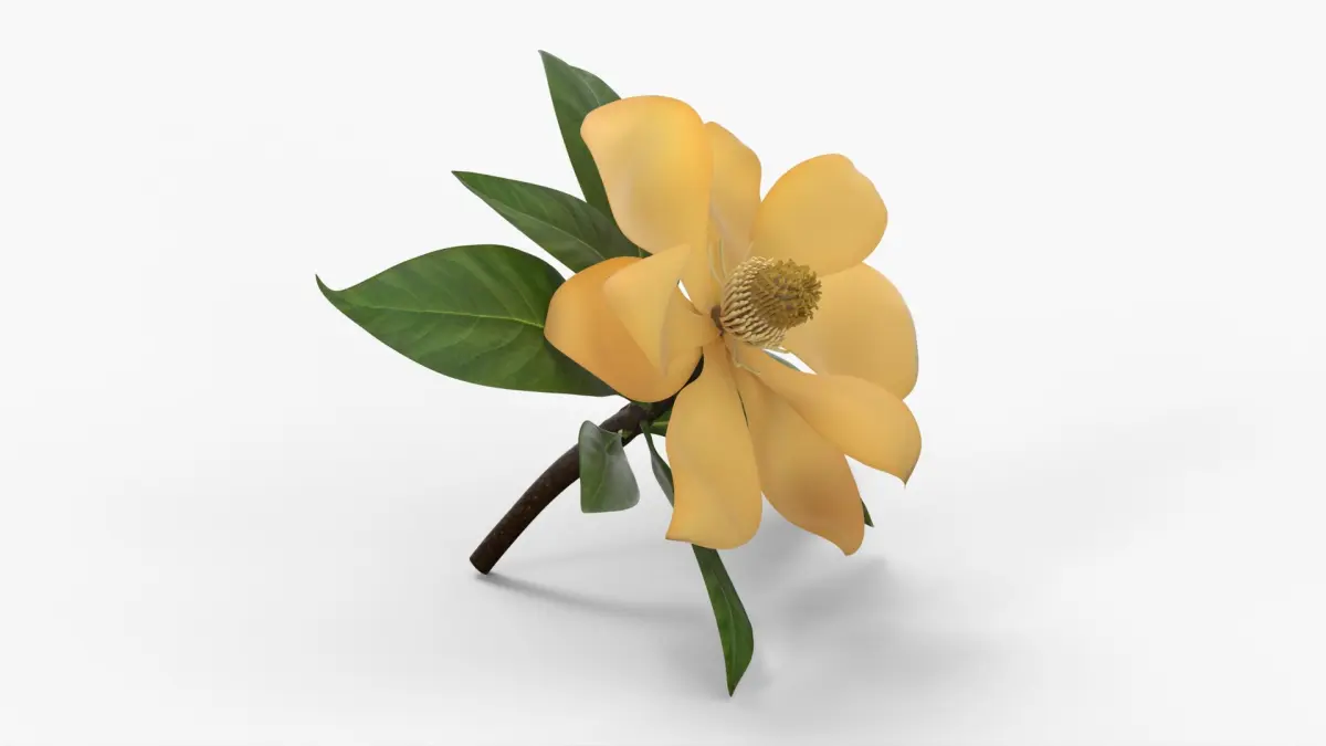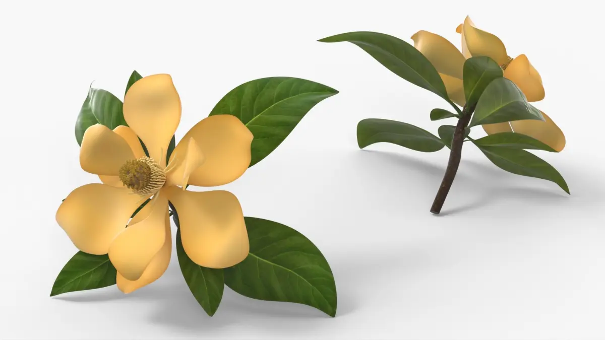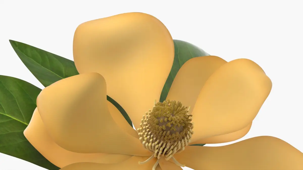 Yellow Magnolia Fully Open Bloom with Green Leaves