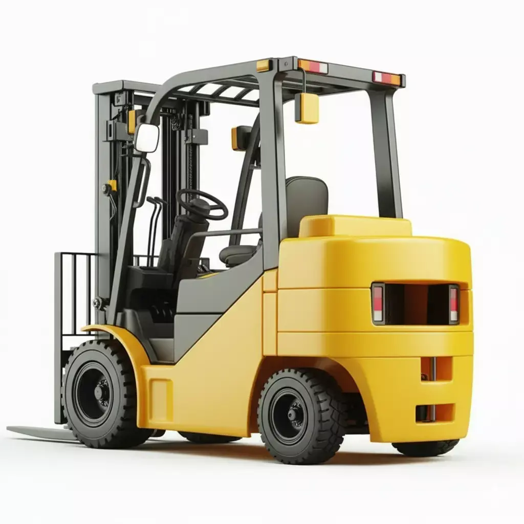 Highly detailed 3D model of a modern industrial forklift, designed for use in warehouse, logistics, and construction environments. This realistic forklift features a vibrant yellow body with black accents, including a robust cab, protective overhead guard, and ergonomic operator seat. The model includes intricate mechanical details such as hydraulic lift arms, mast structure, forks, steering wheel, side mirrors, and rugged off-road tires with deep treads. All components are accurately modeled to reflect real-world engineering, making it ideal for simulations, architectural visualizations, industrial design, and product presentations. The forklift is presented in a clean, neutral studio setting, emphasizing its sleek design and professional appearance. It includes high-resolution textures, PBR materials (albedo, roughness, metallic, normal maps), and proper UV mapping for photorealistic rendering in engines like Unreal Engine, Unity, Blender, Maya, or 3ds Max. The model is optimized for both real-time applications and cinematic renders, with attention to scale accuracy and functional parts. Perfect for use in training simulations, VR/AR experiences, commercial animations, or as part of a larger industrial scene. Ideal for architects, engineers, game developers, and 3D artists seeking a reliable, ready-to-use asset for industrial projects.