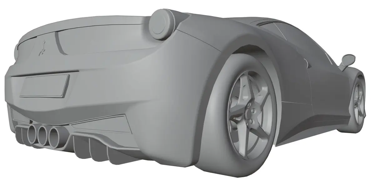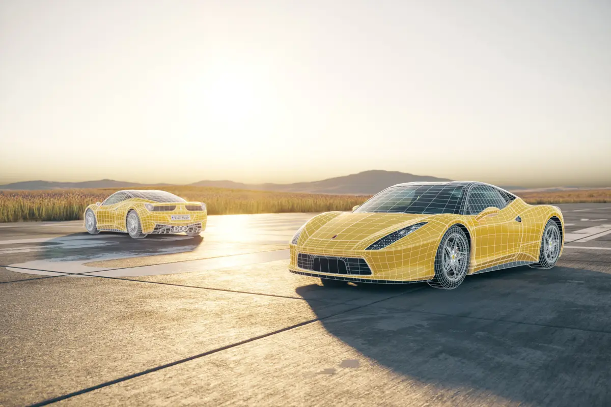 This 3D model includes the yellow sport car stylized to Ferrari. Model prepared for 3d architectural visualisations and other graphic works.
