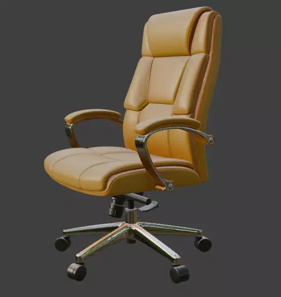 A highly detailed, production-ready 3D model of a premium modern executive office chair with yellow leather upholstery and polished chrome base. Perfect for architectural visualizations, office interior renders, game environments, VR/AR projects, or high-end product visualizations.This model features clean topology, fully unwrapped UVs, and PBR materials ready for any render engine. The leather material uses realistic textures including high-resolution diffuse, roughness, normal, and specular maps (4K). All parts are properly named and organized in logical groups for easy editing.
