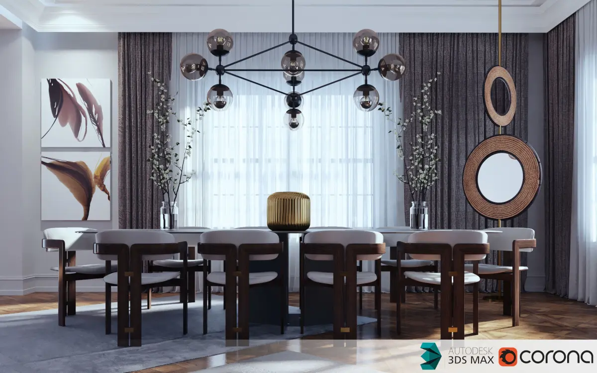 HomeCatalogYellow-Reception Dining scene -corona renderer 3D model