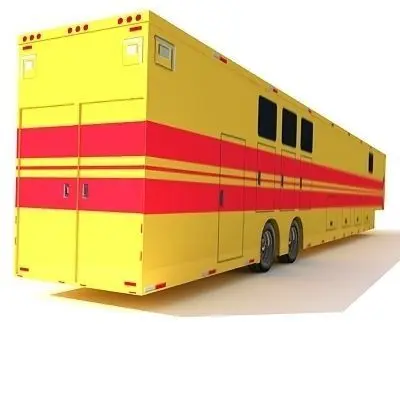 High-quality 3d model of transport trailer.All textures and materials are included.Colors can be customised easily.The images were created with the VRay.The 3d studio Max version is setup with Vray, but you can just delete and re-texture.Textures and maps are in a separated file. HDRI map not included.