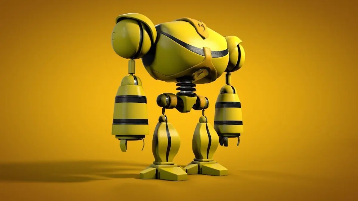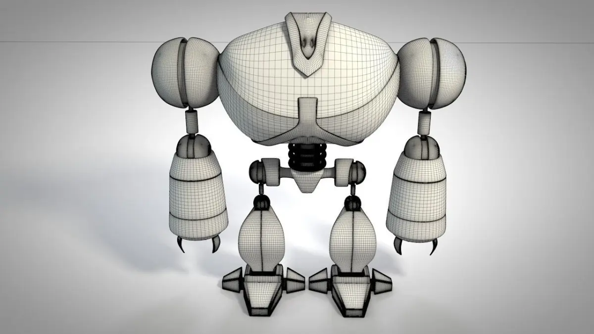 Rigged low poly robot model. Arms and legs are rigged. No textures used, only materials created in C4D.