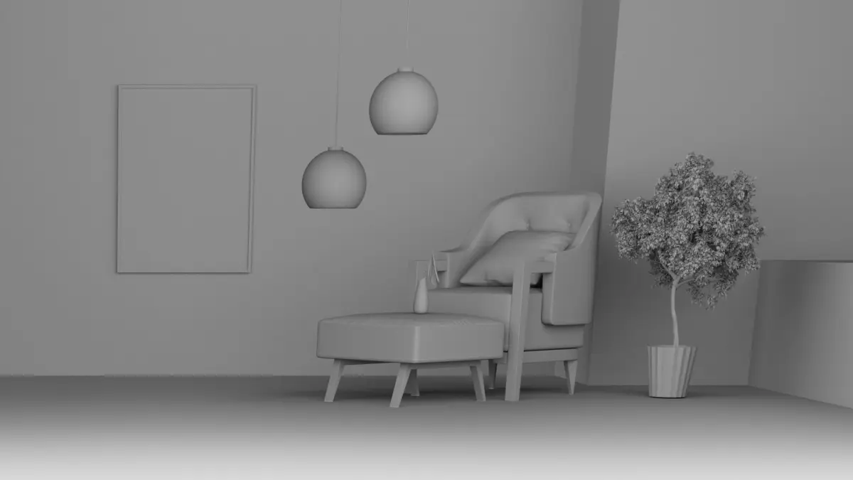 this 3D model is an interior corner that includes a modern chair and painting bringing the look of a modern relaxed room together in a clean and simplistic way the wood floor brings the value of the room this model has 2326552 polygons and 2891628 Vertices this model is high poly and it was made in Cinema 4D and rendered in Thea