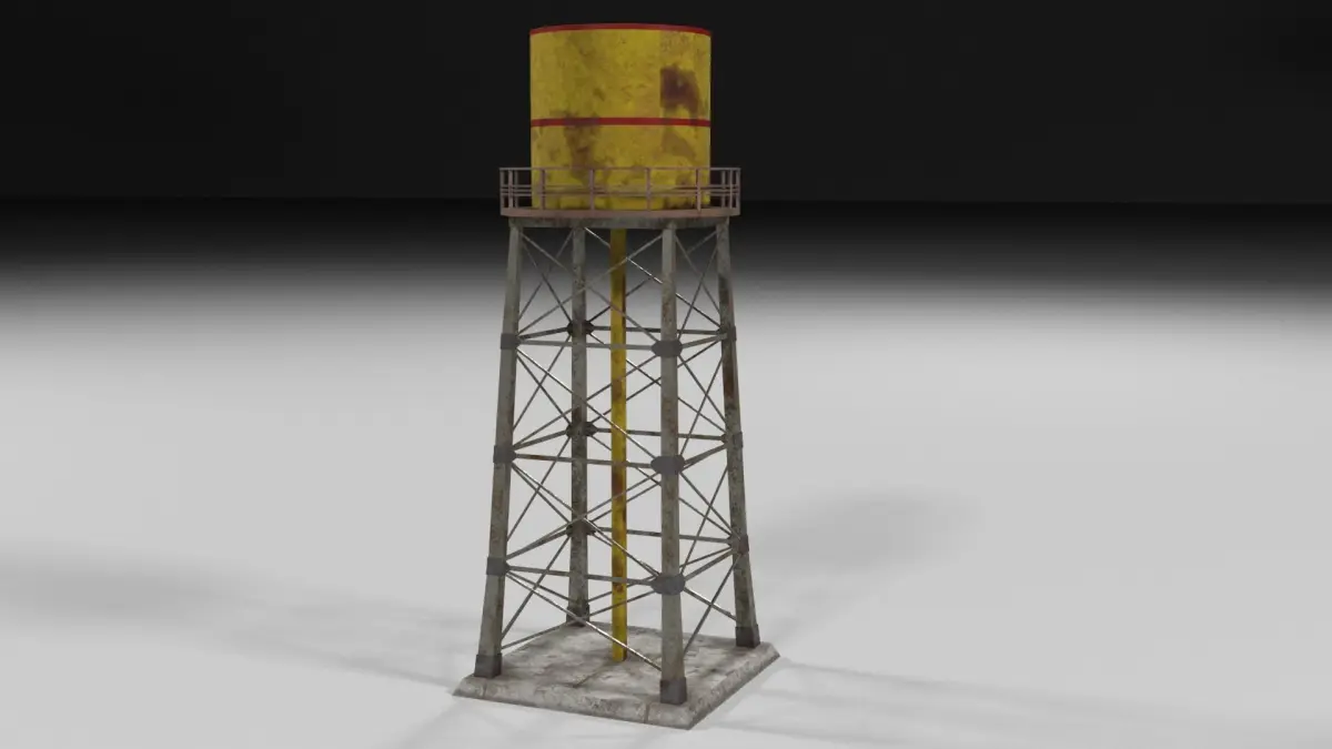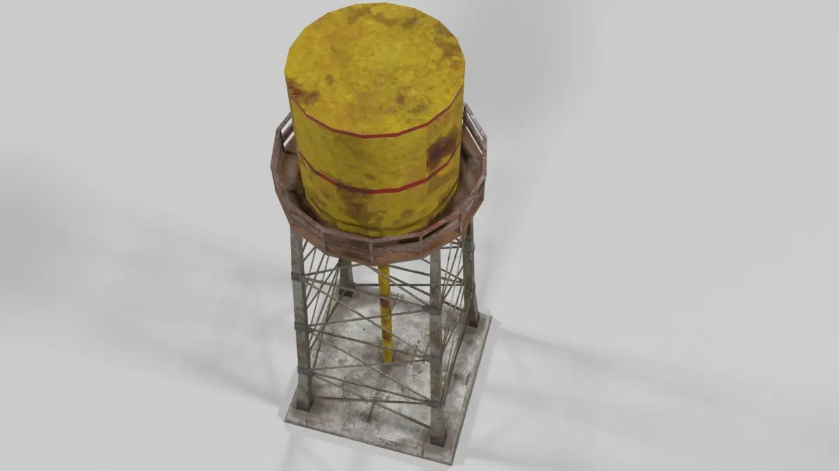 Yellow rusty water tower for game. The tower is ready to be used.