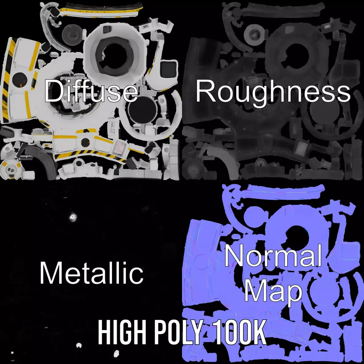 The Yellow Striped Drone Pod model pack offers a sci-fi inspired drone pod characterized by its distinctive yellow striped design. Ideal for futuristic settings in films, video games, or simulations, this model provides versatility with three levels of detail: low-poly for mobile platforms, mid-poly for environment design, and high-poly for high-resolution rendering. The model's textures include PBR, Diffuse, NormalMap, and reflection/roughness/metallic, ensuring compatibility with modern rendering engines. All models have accurately unwrapped UVs with no overlaps. Enhance your projects with this feature-rich drone pod; please like and comment if you enjoy this model. All textures are 4096*4096 in size.