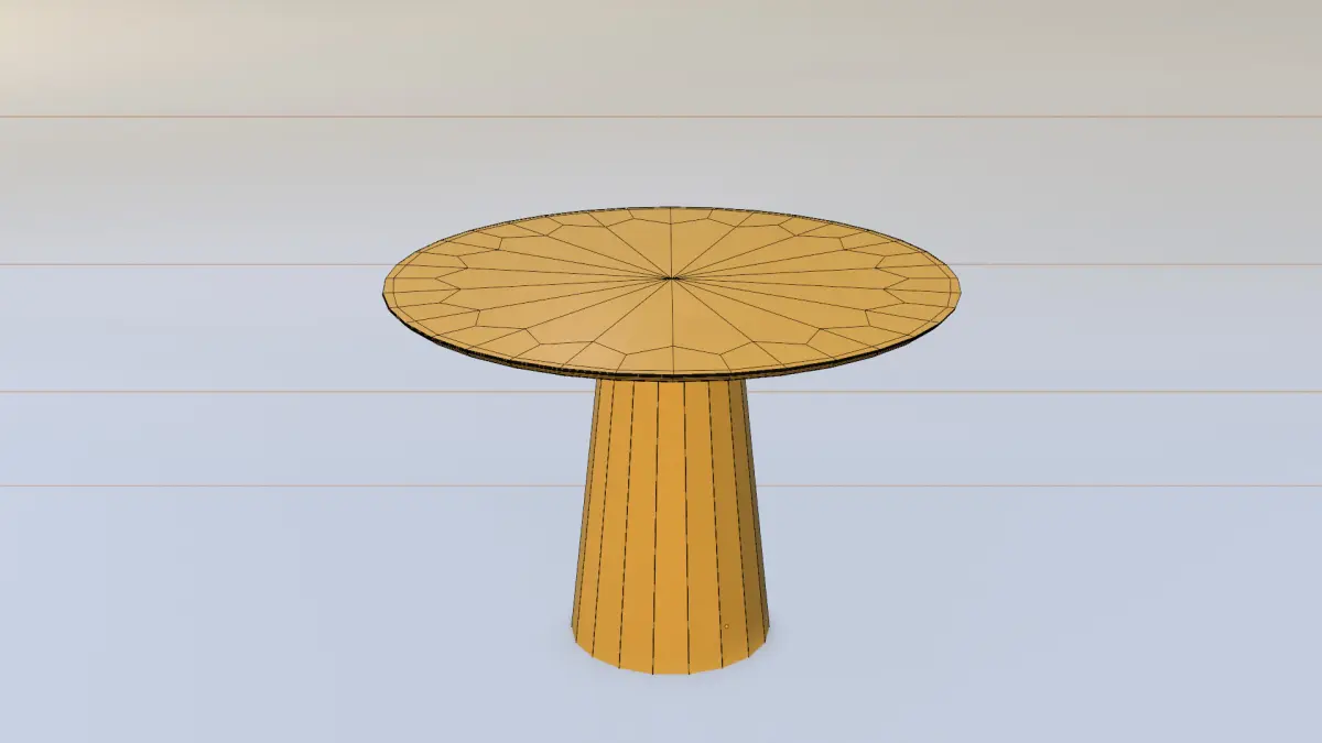 Modeling Details: Circular tabletop with smooth edges for realism. Faceted base with geometric symmetry and clean lines for a modern aesthetic.