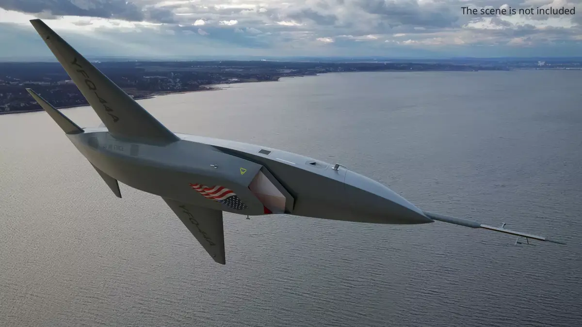 YFQ-44A Armed Fighter Aircraft with Missiles Gunmetal Grey is a three-dimensional model of a tactical stealth combat jet, outfitted with integrated missile systems and built for high-performance aerial engagement in advanced military operations.