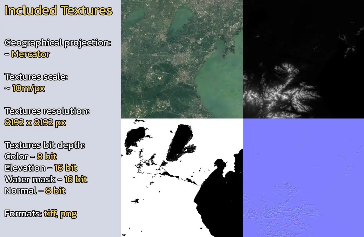 - Textures resolution: ~10m/px