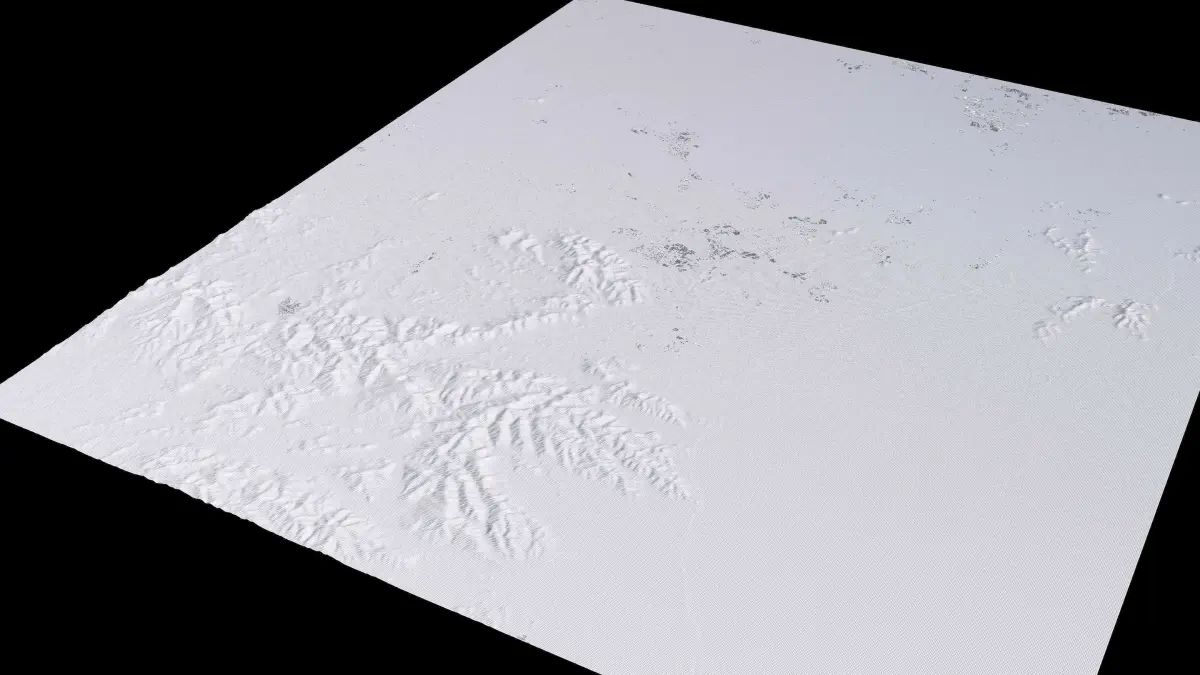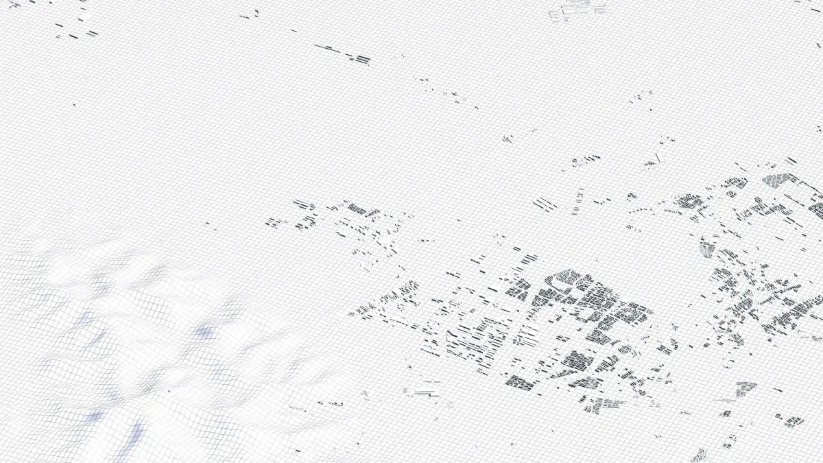 Originally created in Houdini 19. Final images rendered in Houdini. Data source is ASTER GDEM V3, ASTER WATER V1, Open Streep Maps 2022, Copernicus Sentinel 2016.