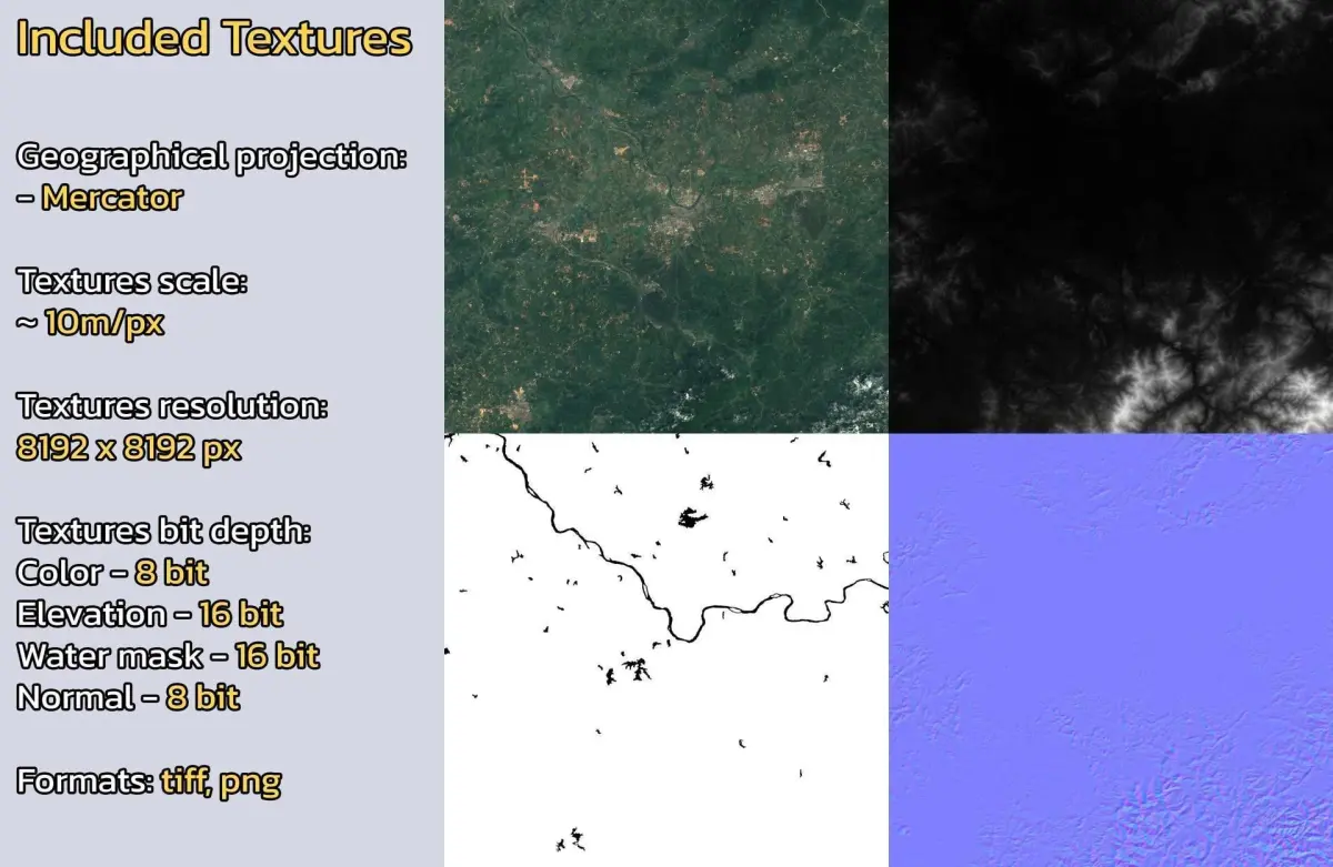 - Textures resolution: ~10m/px