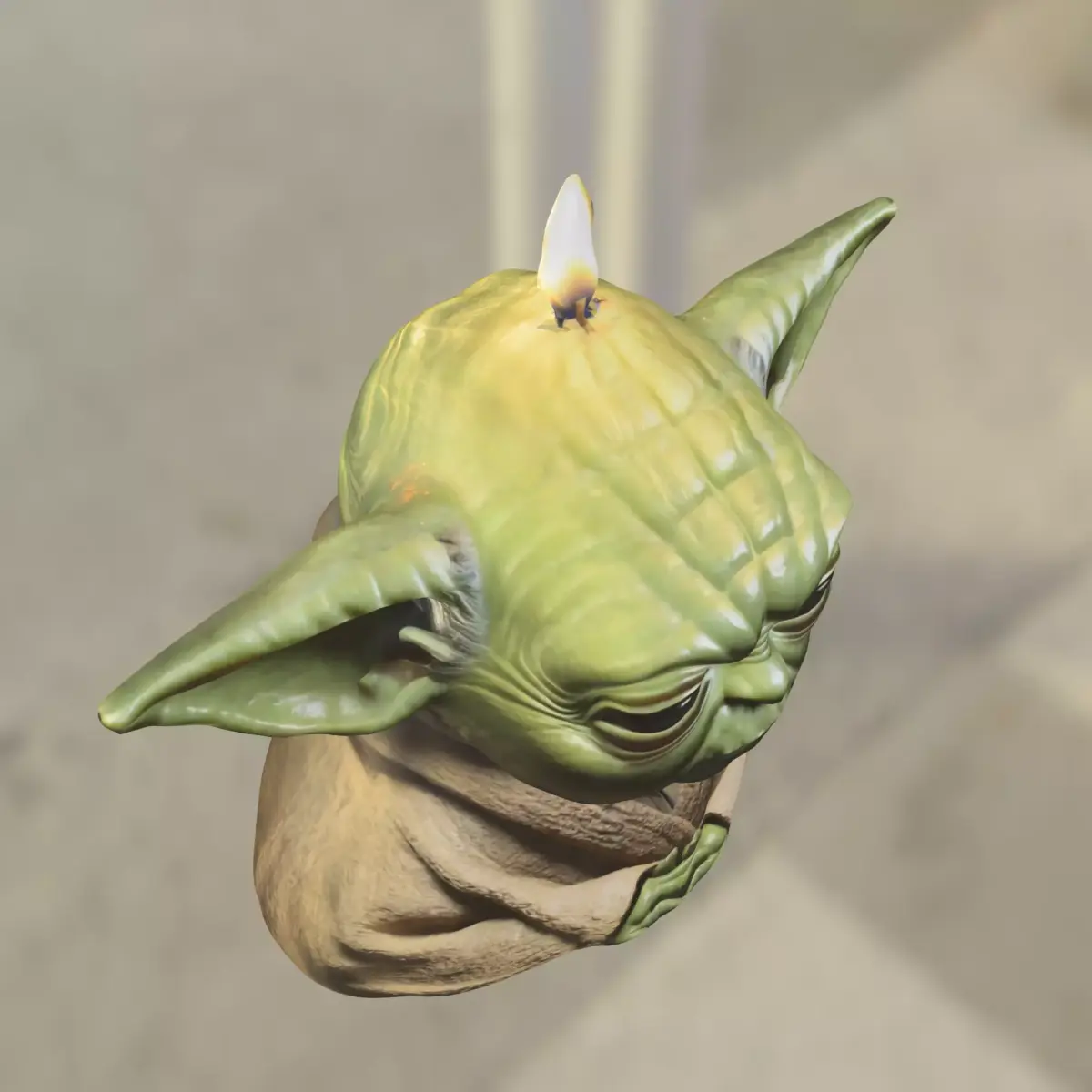 High-quality 3D bust model of a Yoda shaped candle, designed with detailed robes, large ears, and a stylized appearance. This model is ideal as a collectible prop, decorative figure, or NPC character for popular games such as The Sims, Skyrim, Fortnite, and Minecraft mods. Delivered in multiple formats (OBJ, FBX, STL, DAE, PLY, GLB, Blender), it is optimized for use in Unity and Unreal Engine projects. Additionally, the model is prepared for 3D printing, making it suitable for physical figures, collectibles, and fan-made displays.