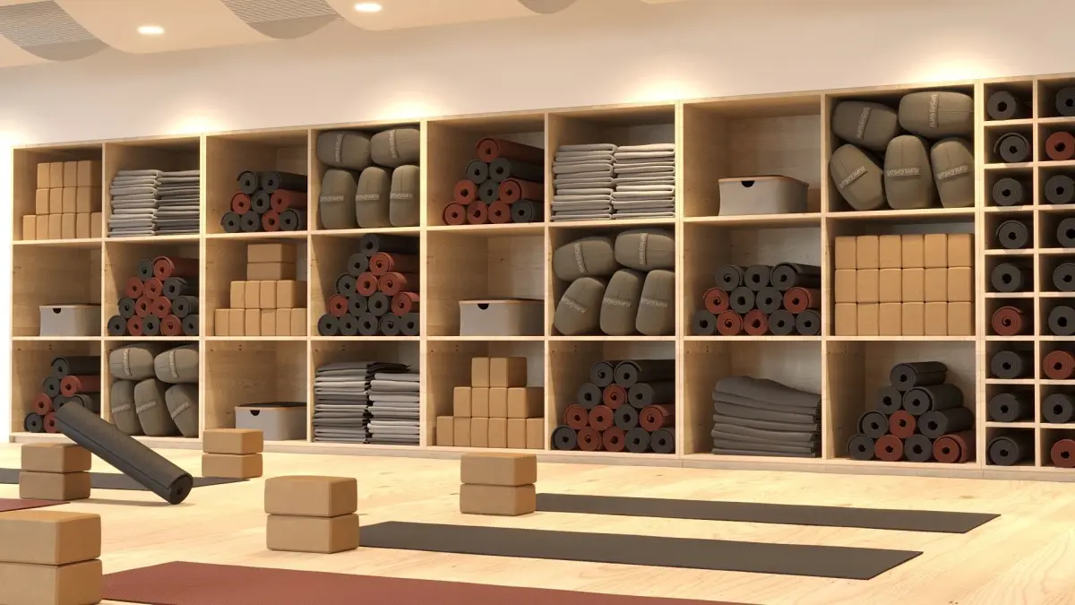 This scene includes: Storage cabinet for yoga or fitness studio. High quality, and photo realistic 3D models. These models were originally modeled in 3ds Max 2016 and rendered with Vray.