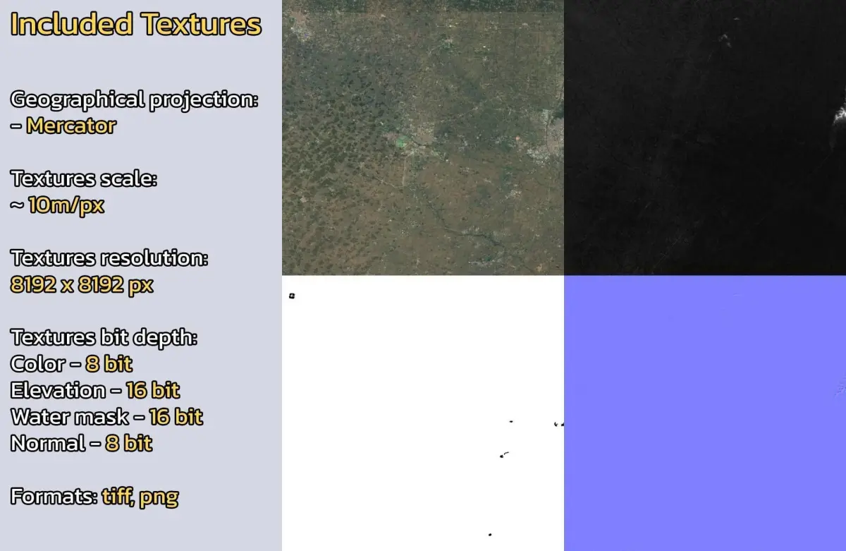 Warning: minor clouds/artifacts may be present on the diffuse color satellite texture due to the nature of the dataset. Check product images.