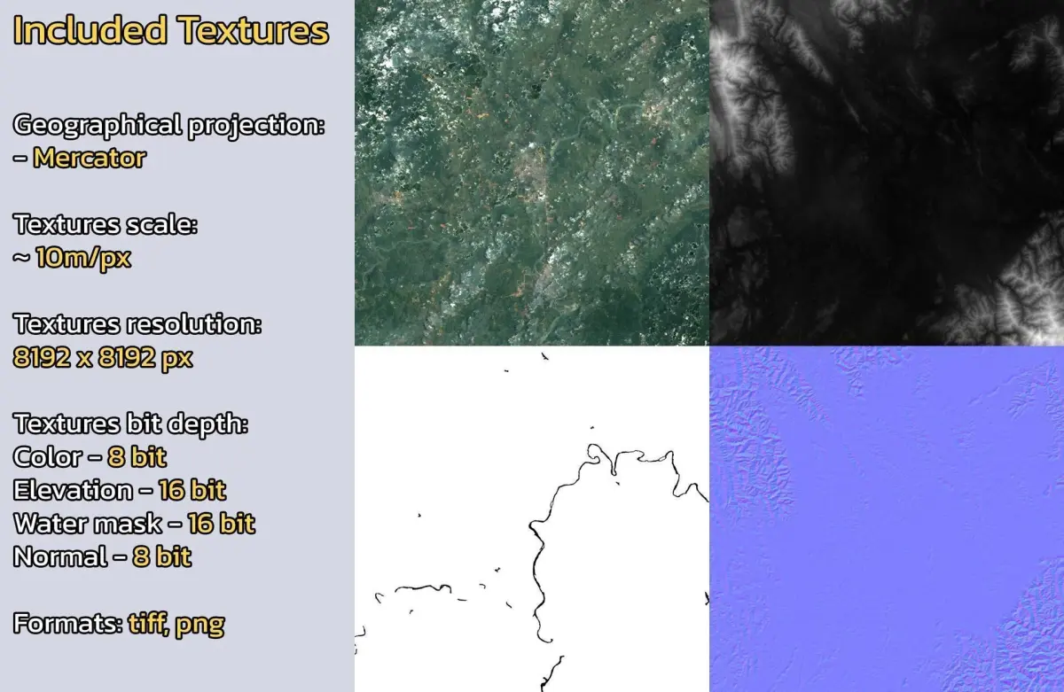 - Textures resolution: ~10m/px