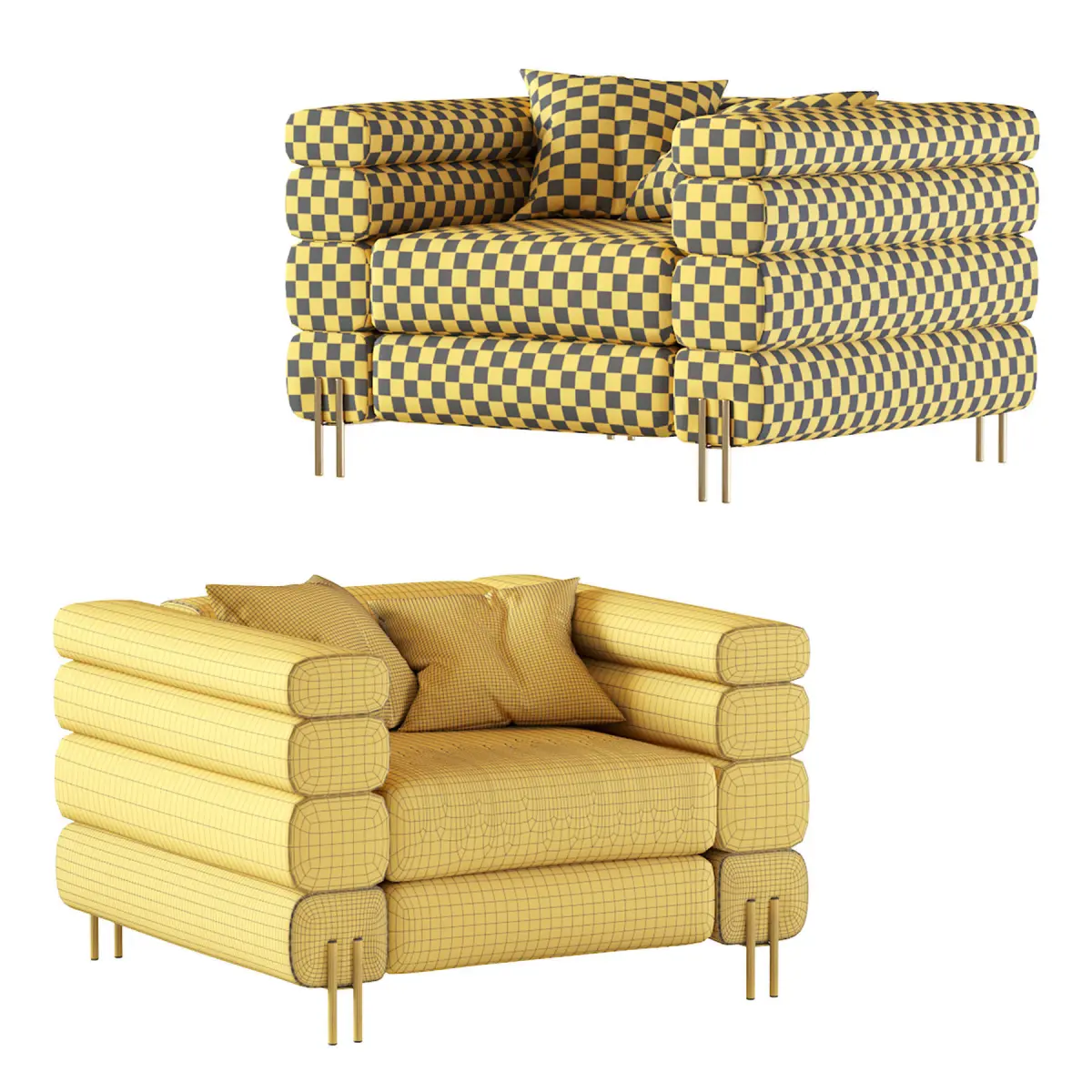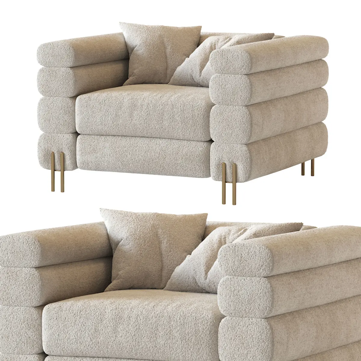 HIGH END HOMESink into the padded comfort of this statement chair as you unwind from the day. Handcrafted by skilled artisans, the chair comes with the option of a tactile upholstered finish in bouclé or velvet. Its frame is stylishly offset by its fabulous brushed brass finish legs.