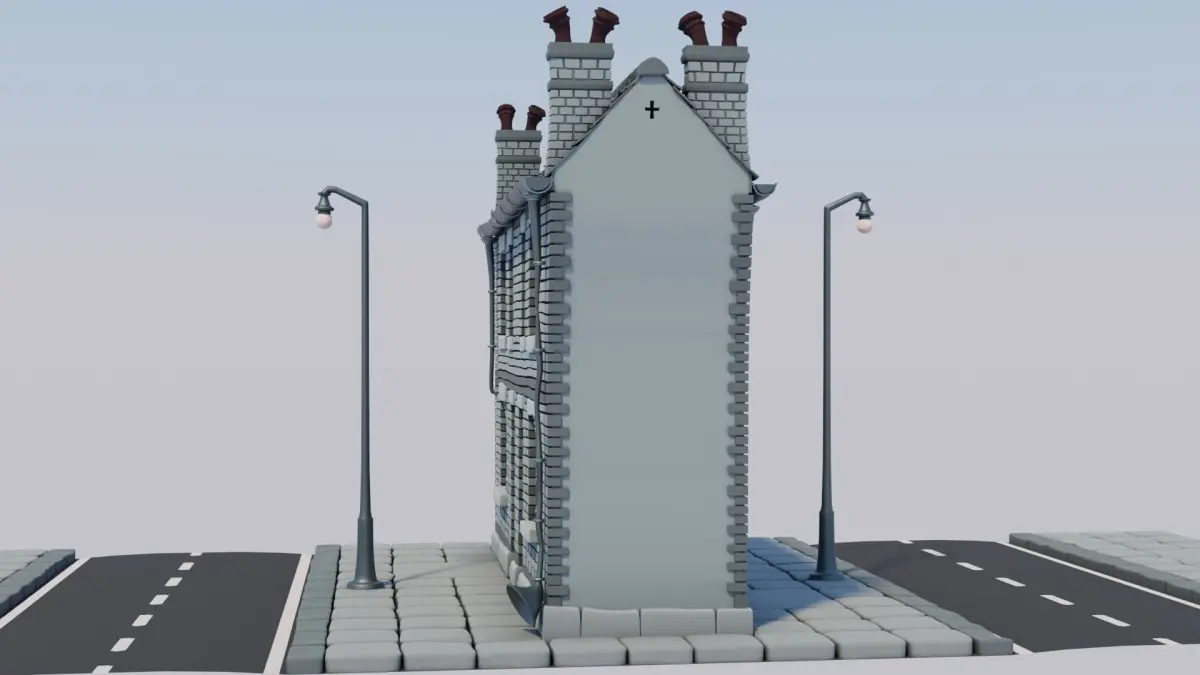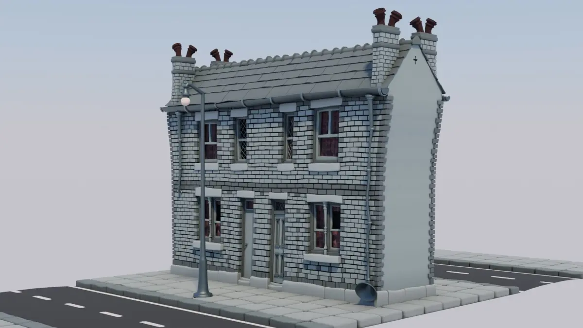 The building can be rotated 180º to show the rear elevation for variety when arraying to create a street.