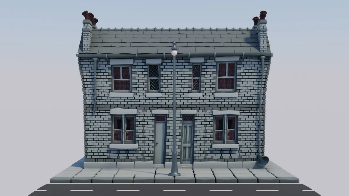 A cartoon version of an old Yorkshire tenement.