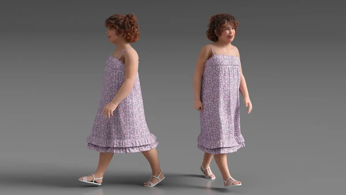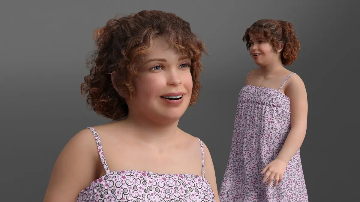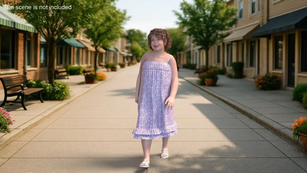 Young Obese Girl Walking in Casual Summer Dress is a high quality, photo real 3d model that will enhance detail and realism to any of your rendering projects. The model has a fully textured, detailed design that allows for close-up renders, and was originally modeled in 3ds Max 2020 and rendered with V-Ray. Renders have no postprocessing!
