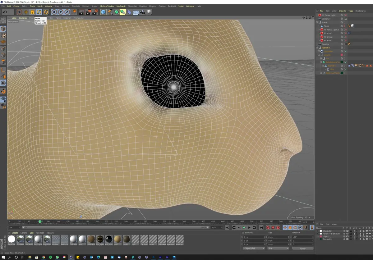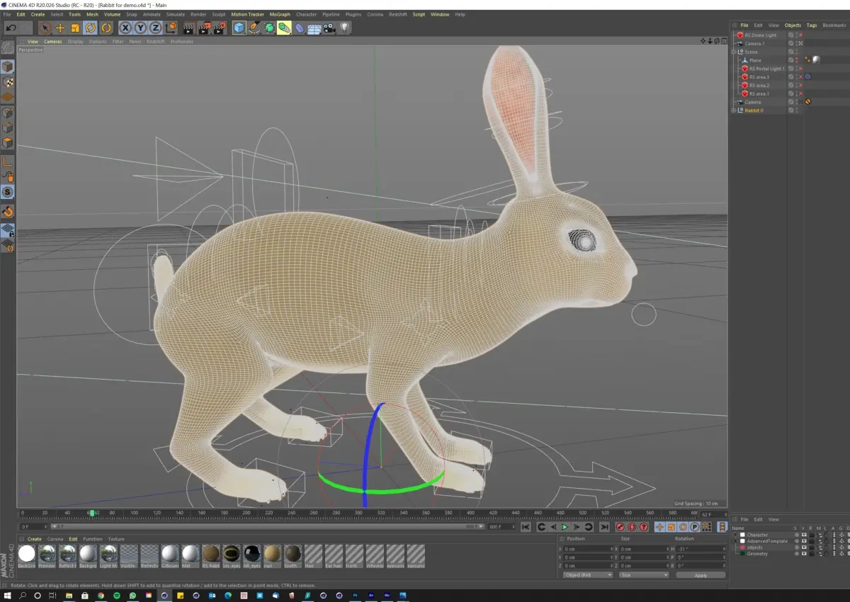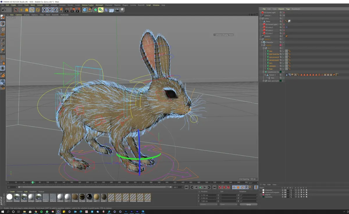Rabbit/Bunny/Hare modelled in C4D version R20, using Redshift (way faster rendering plus Physical render in C4D has issues with hair), can be converted to standart renderer as hair does not need to be changed.600 frame very realistic animation included (please check the embedded video)Fully rigged (please check the 2nd video)Detailed facial movements (2nd video)Some light set up is included. You need to use your own EXR photo matching your scene if you want to use the dome lighting.NO BACKGROUND INCLUDED.Please read the licence details carefully, any render that uses this model is not allowed to be sold as Royalty Free/Stock/Rights Managed. No Stock Clearance houses like Shutterstock etc....