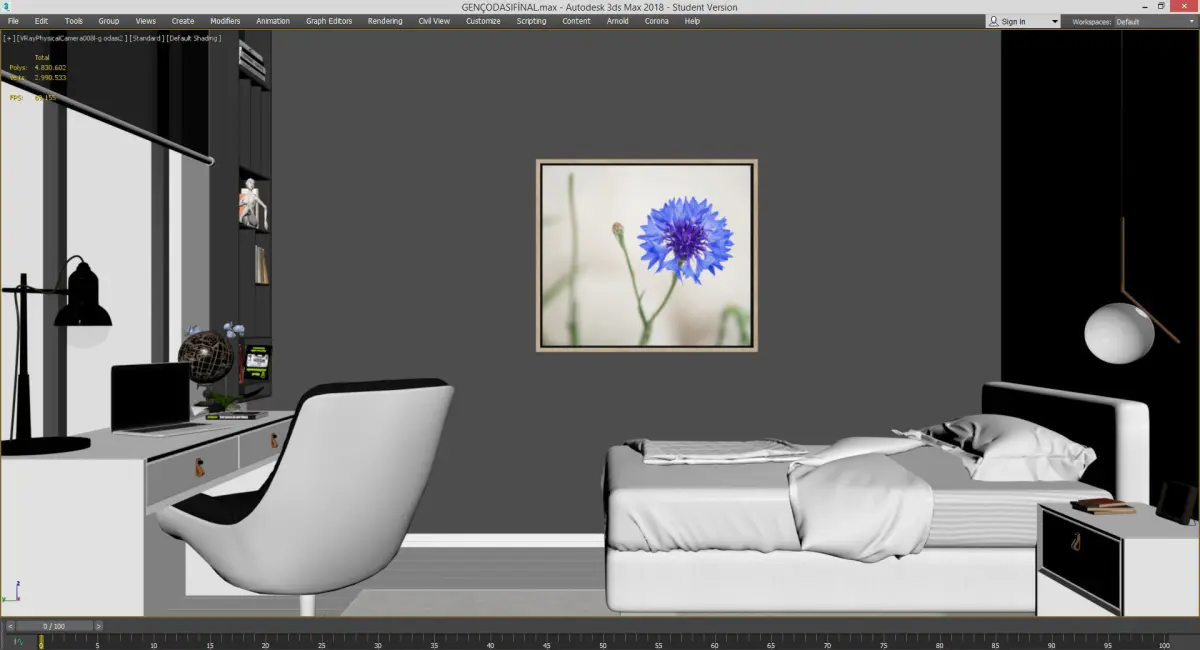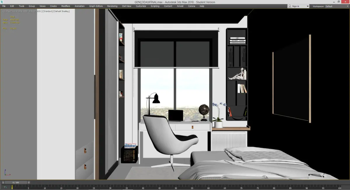 I shared the work of the young room of a sample apartment house. You can also easily use your sample apartment house works.Lighting, material texture and vray settings are ready.Enjoy.