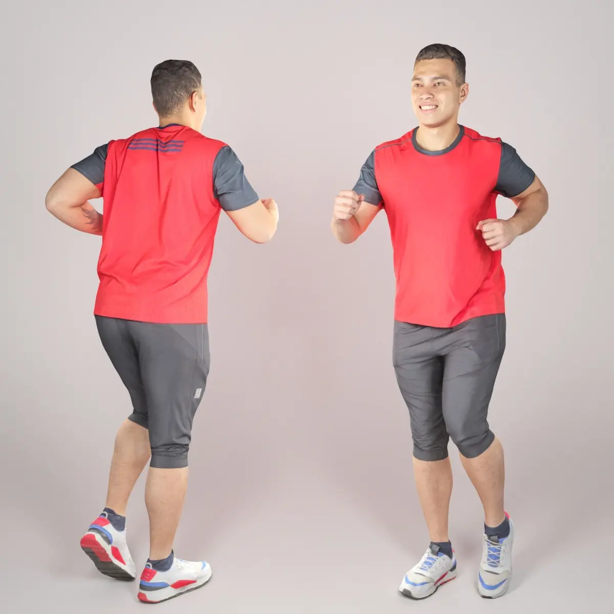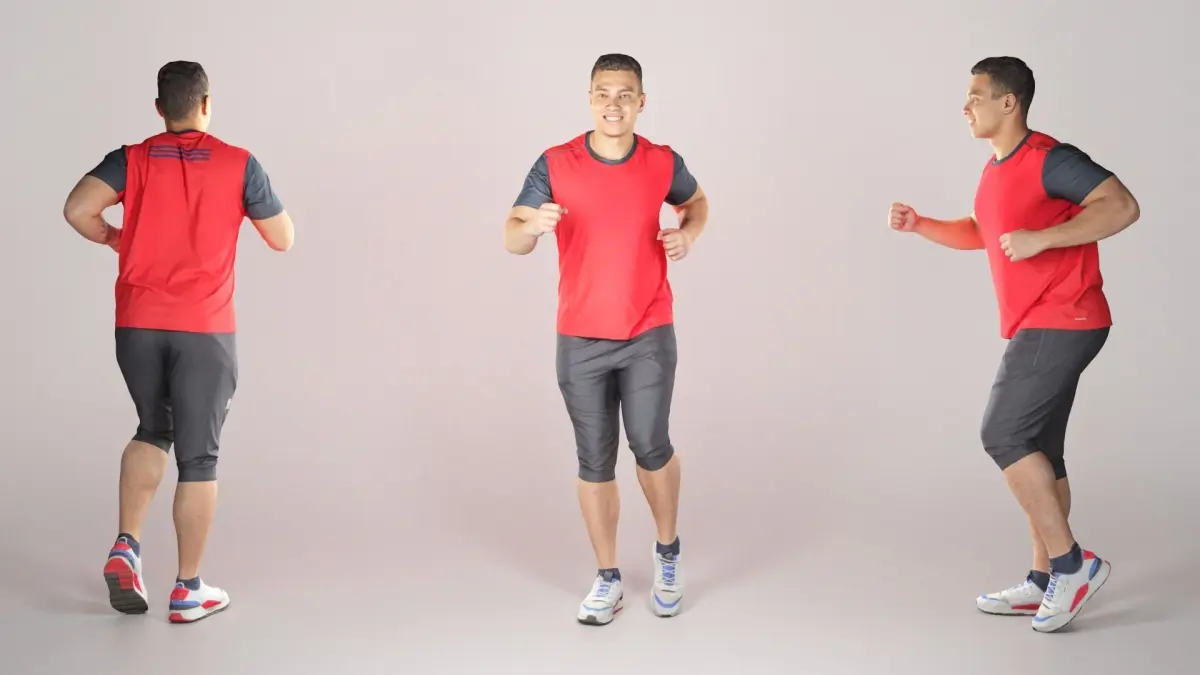 This is a true human size and detailed model of a sporty handsome young man of Caucasian appearance. The model is captured in casual pose to be perfectly matching for variety of architectural visualizations, background character, product visualization e.g. beach, jogging track, gym, park, etc.