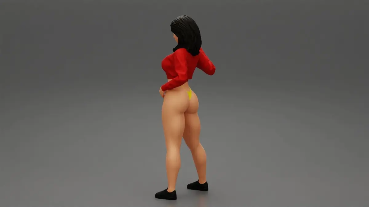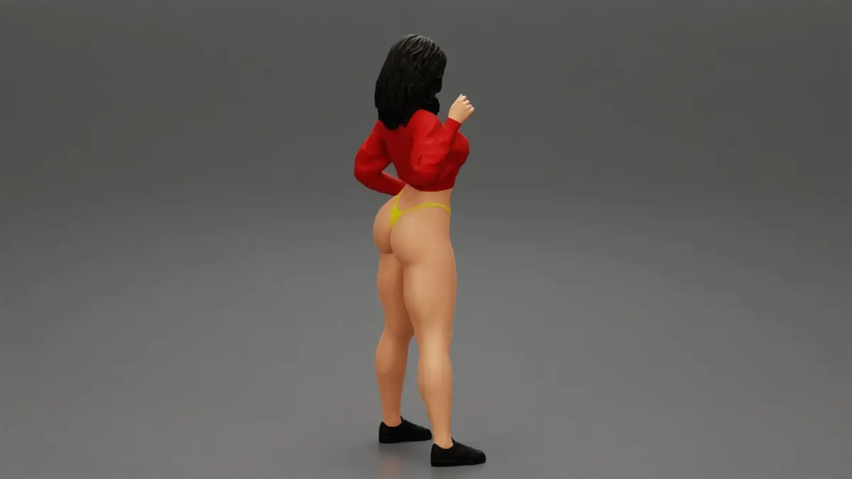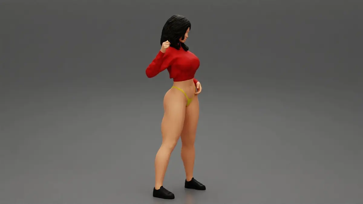 young woman wearing long sleeve crop shirt and mini short 3D print model