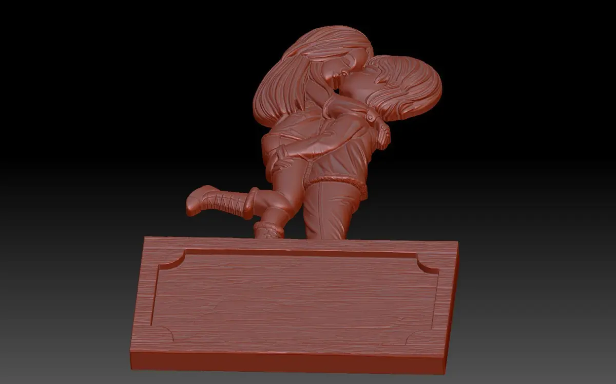 a 3D model depicting a couple of lovers. The boy holds his beloved in his arms. Happy and in love, beautiful and interesting work. The work is suitable for 3D printing and CNC machine tools.