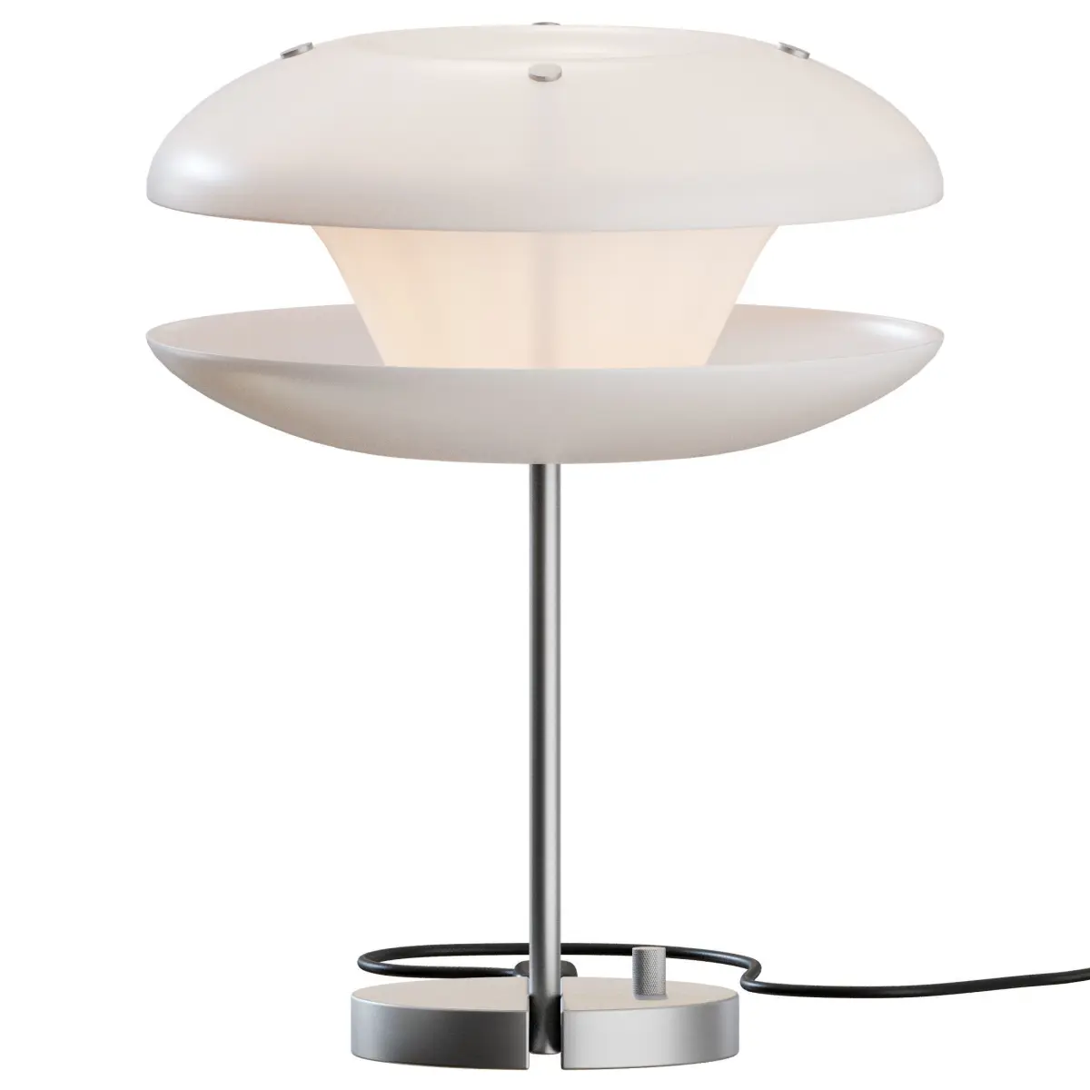 - Opal glass lampshade on a metal base