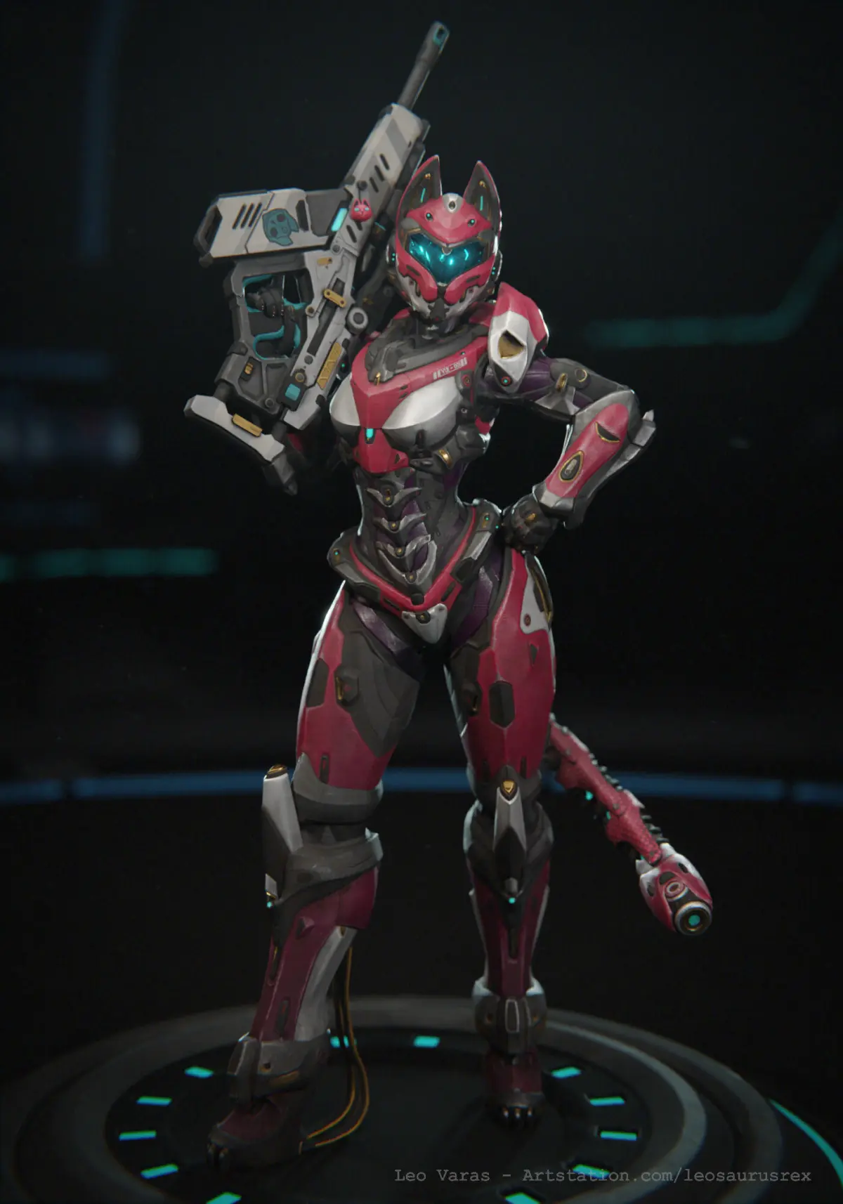 This is Yui, a Sci-fi soldier with a suit of power armor conveniently shaped like a cat. This is a PBR, low poly (75k polygons), fully rigged (with a Unity Humanoid and UE4 humanoid rigs included). This is an updated version of an older model, this version has: Cleaner design, much more detail through the entire model, much lower polycount (from ~100k to ~75k), all new textures, retractible claws, cat charm on the rifle, hair cards instead of mesh hair, and 7 different color schemes: Base, Black, White, Brown, Green, Slayer, Hunter.Please reffer to videos for the Unity and UE4 showcases.