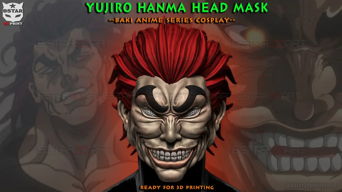 Yujiro Hanma Head Mask (With Hair Ver) - Baki Anime - Netflix Series scale 1:1 for Decor/cosplay