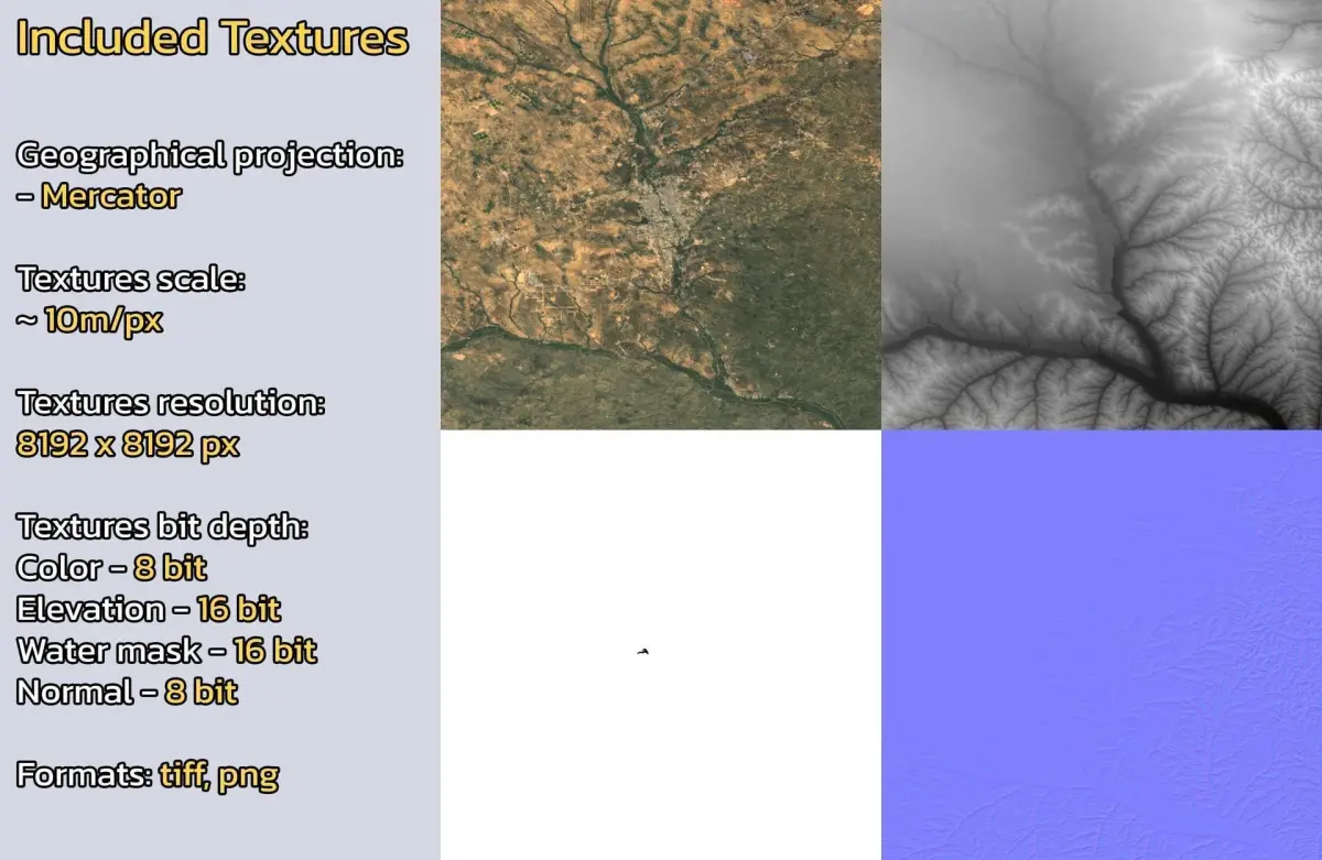 - Textures resolution: ~10m/px