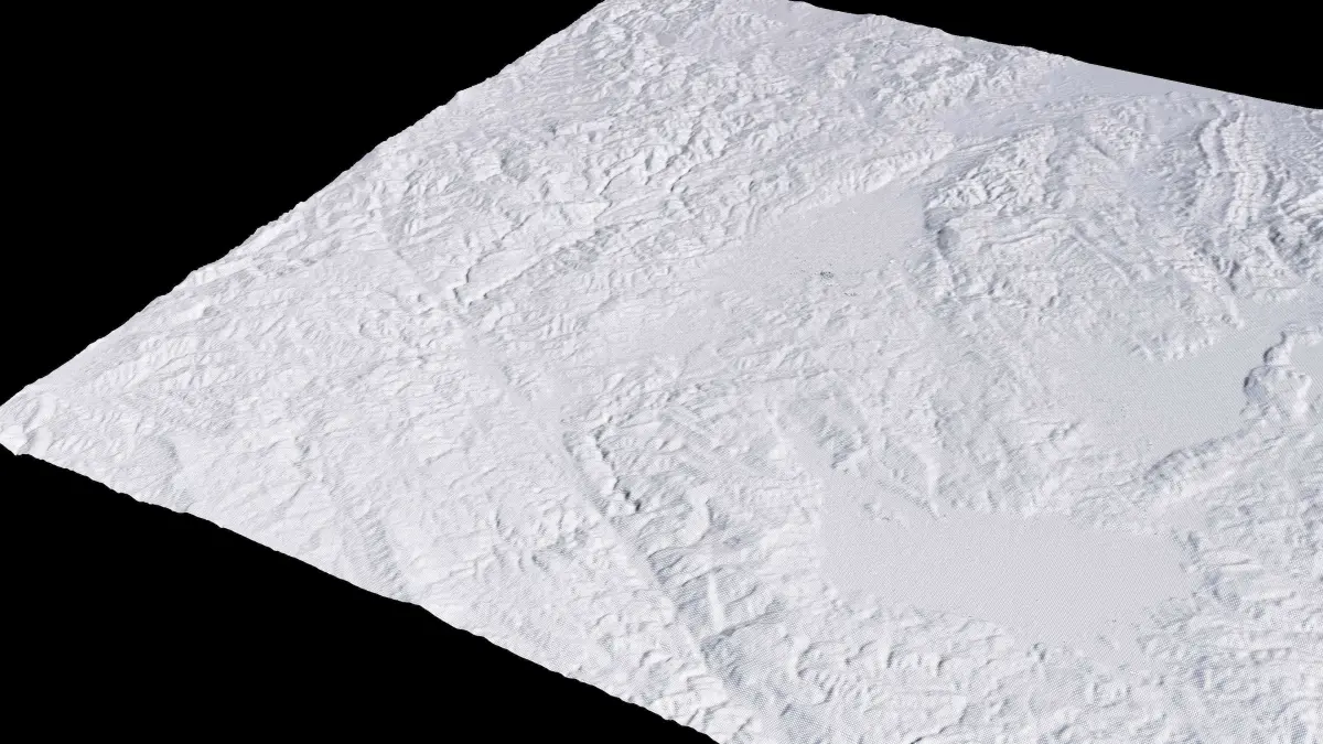 Originally created in Houdini 19. Final images rendered in Houdini. Data source is ASTER GDEM V3, ASTER WATER V1, Open Streep Maps 2022, Copernicus Sentinel 2016.