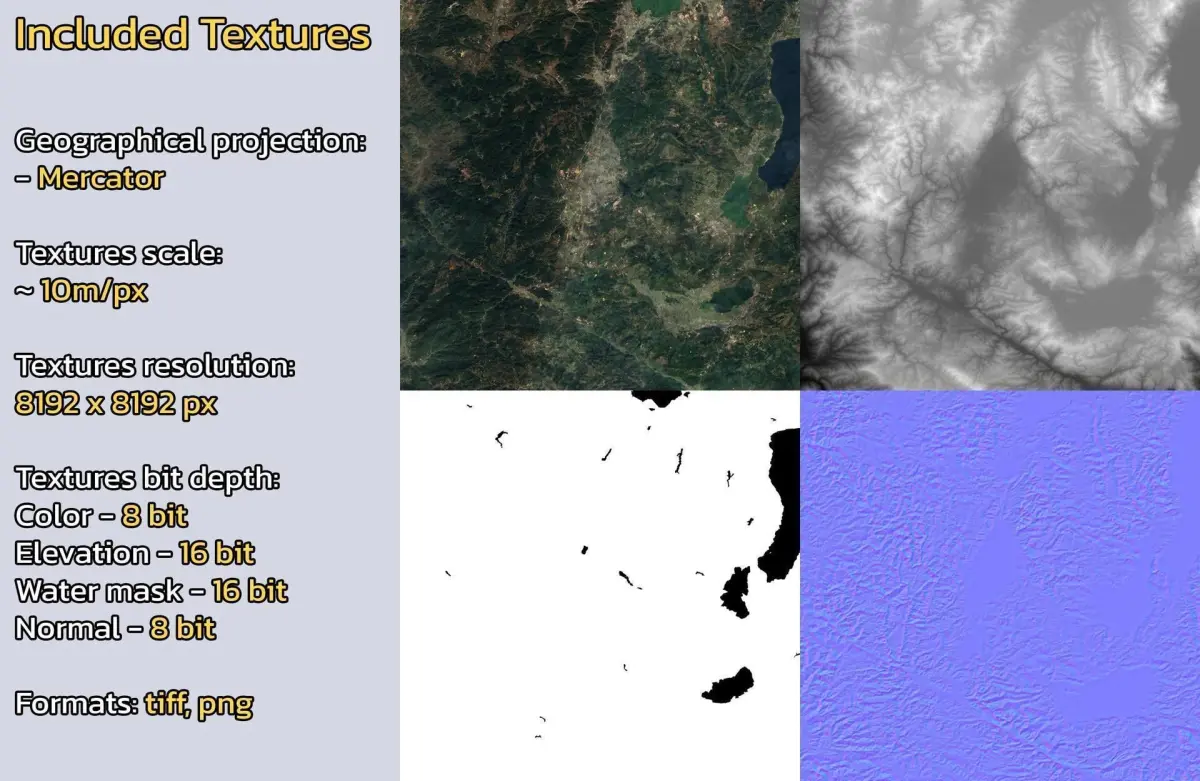 - Textures resolution: ~10m/px