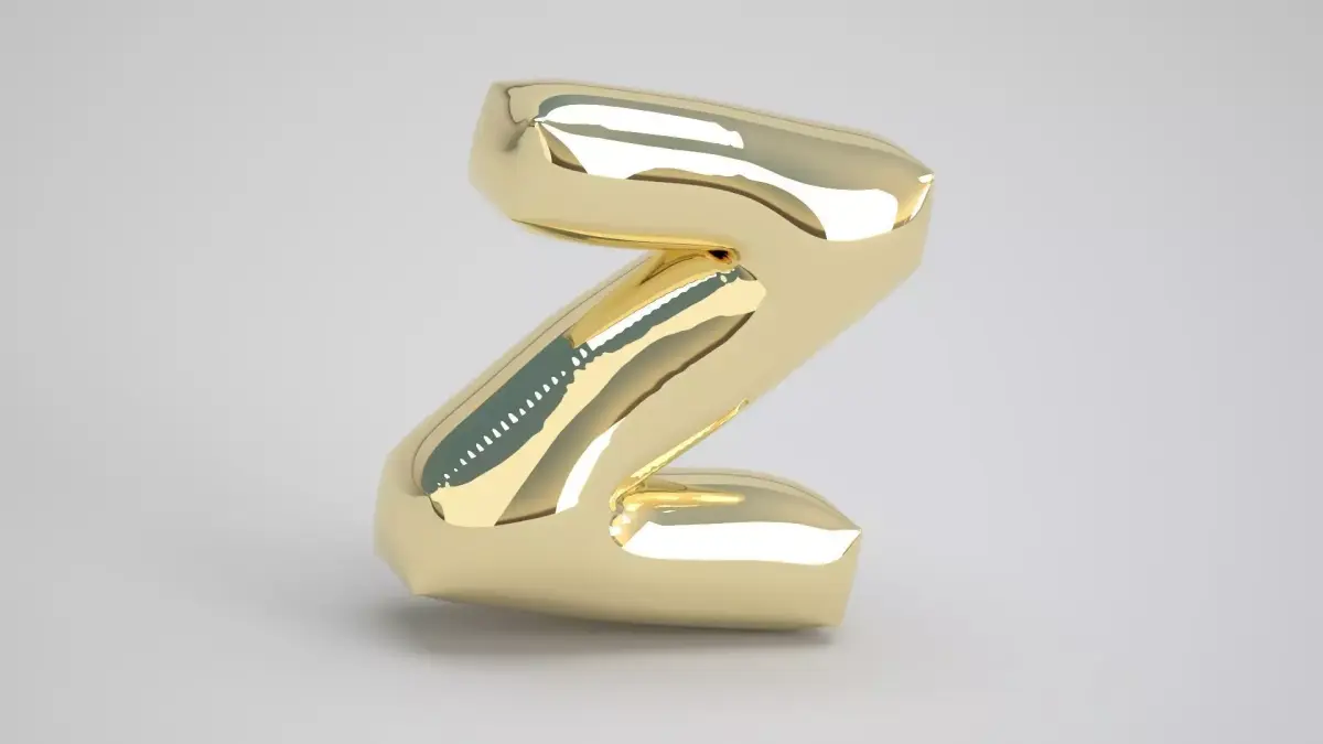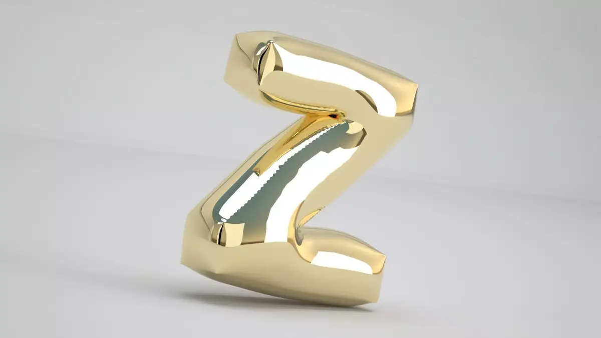 Realistic 3D Model OF Balloon Z Alphabet Gold