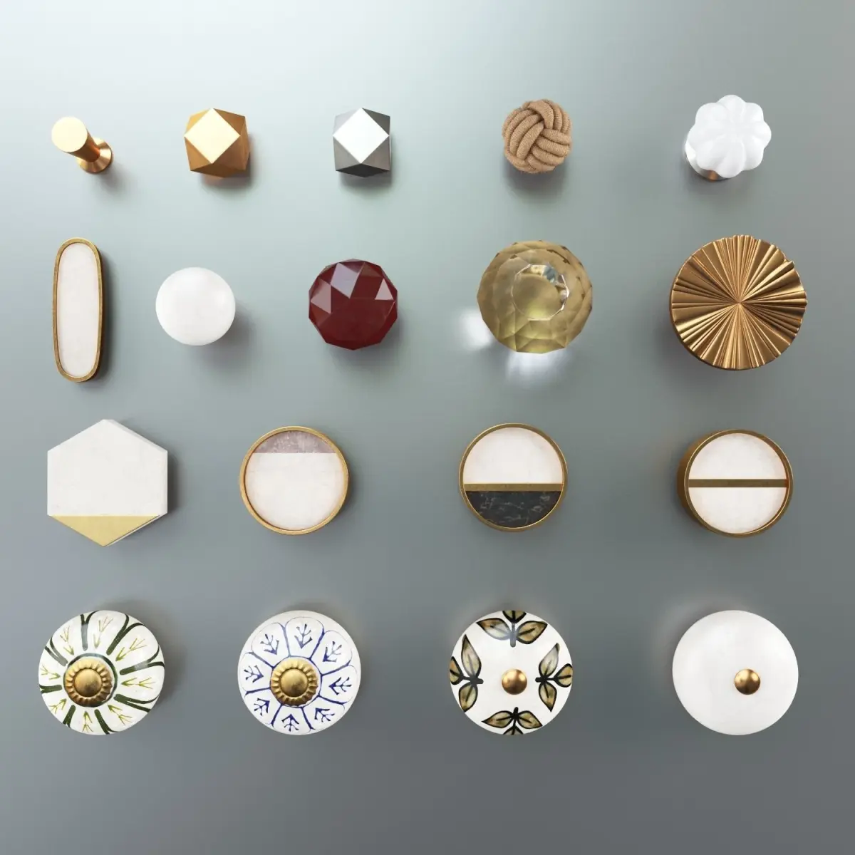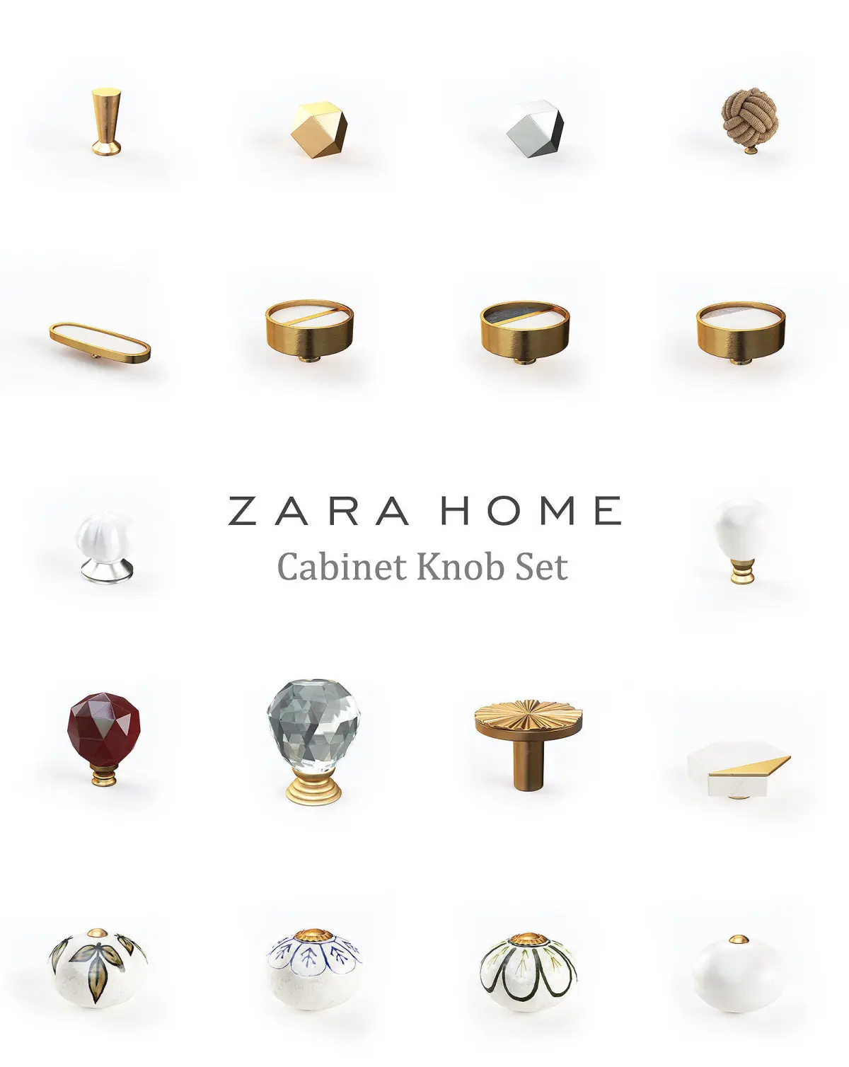 Collection of 18 different Zara Home Cabinet Door Knobs.