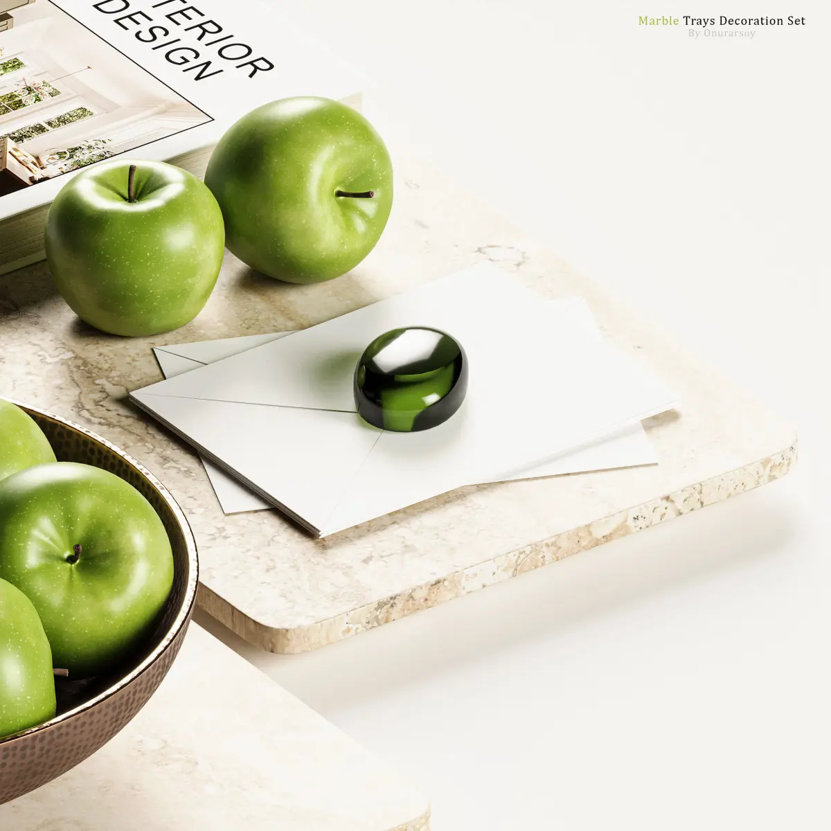 Zara Home - Marble Tray Decoration SetIncludes, a Book , Envelopes , Paper Weight , Glasses , Green Apples in a Bowlthanks