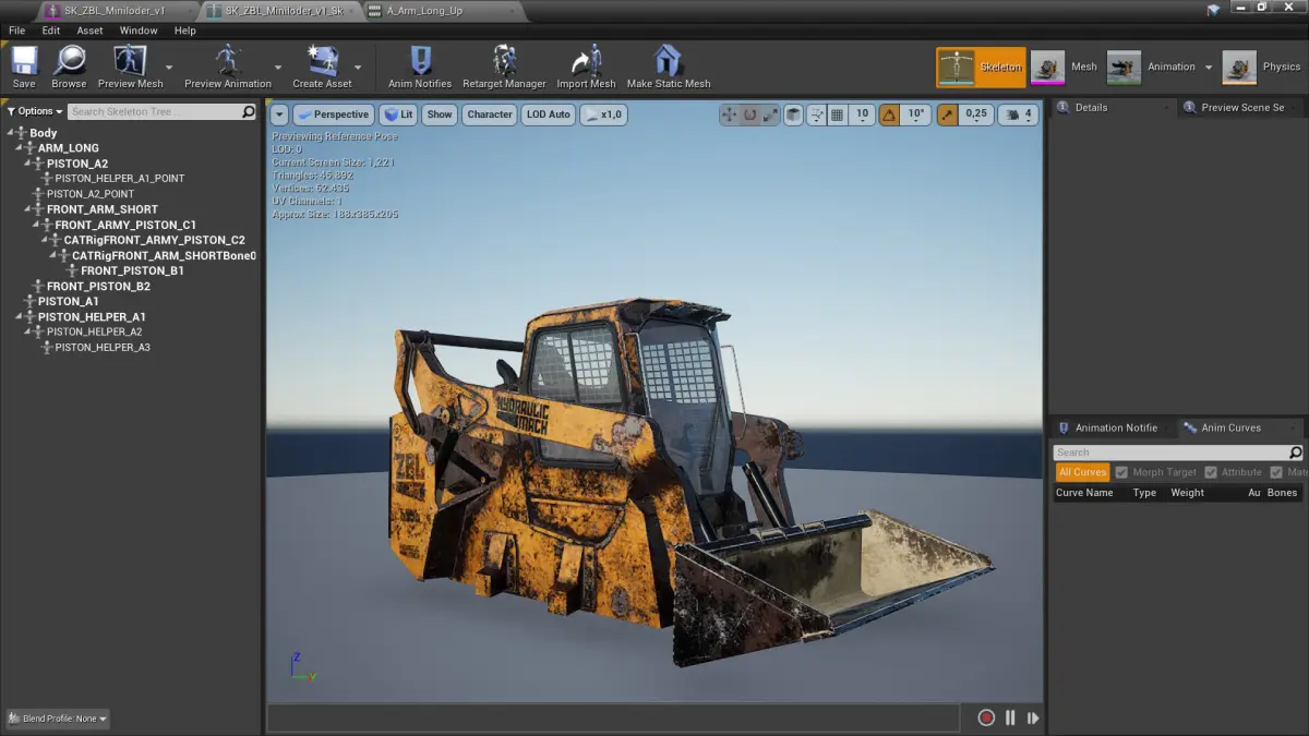 In this project, I made a mini-loader. Pallet animations and animations of hydraulic arms are available in the project.