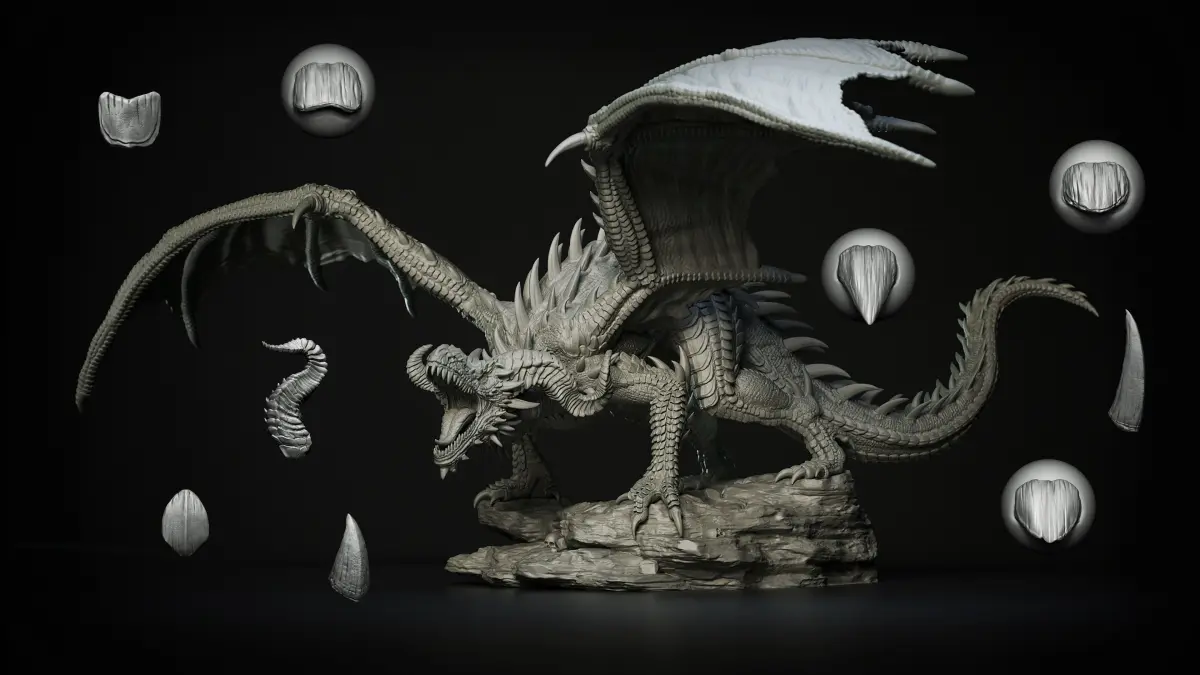 Dragon Model detailed using the brushes : https://www.artstation.com/artwork/LR6A5w